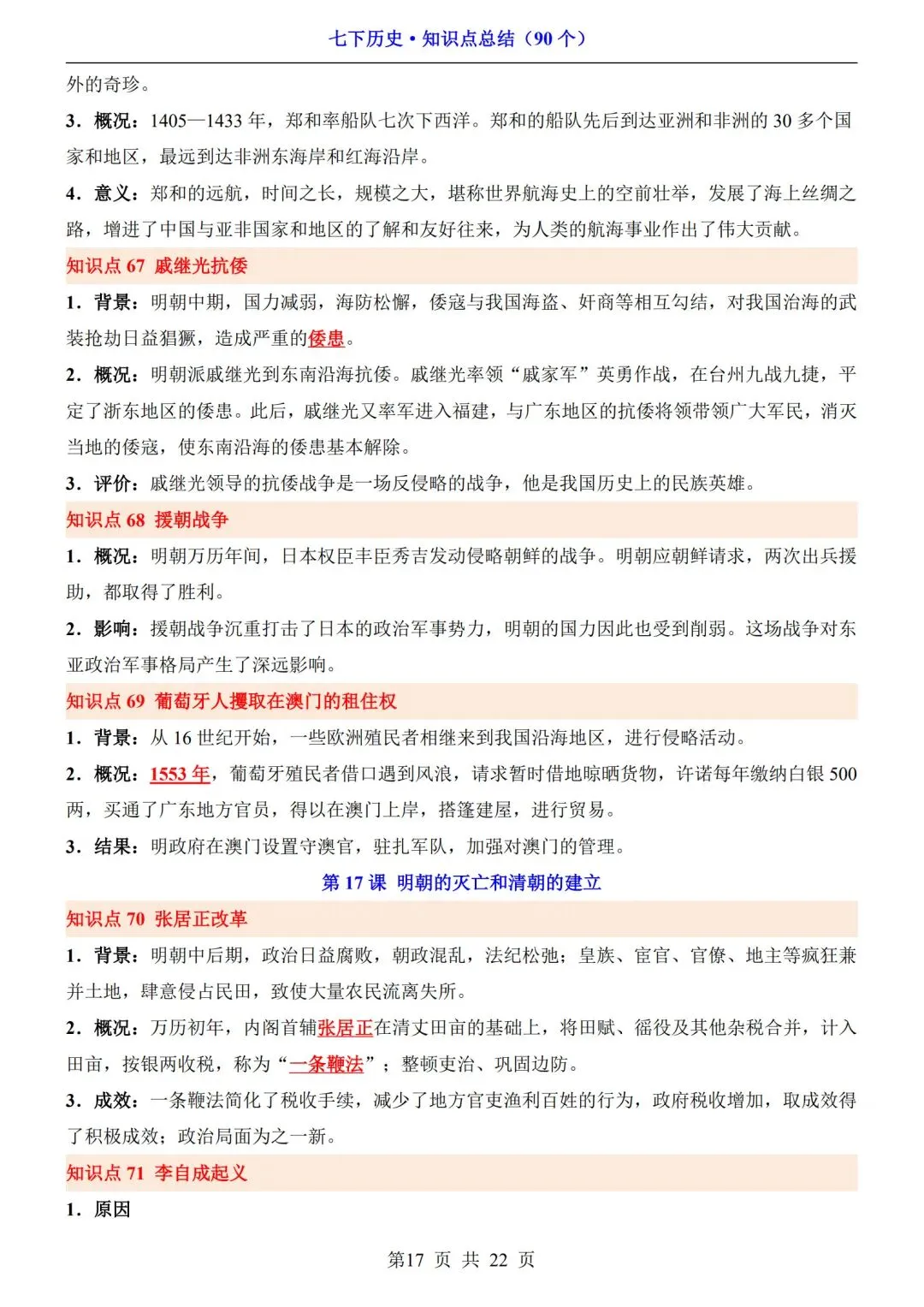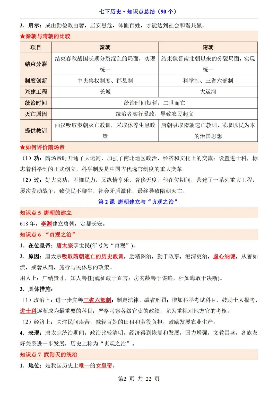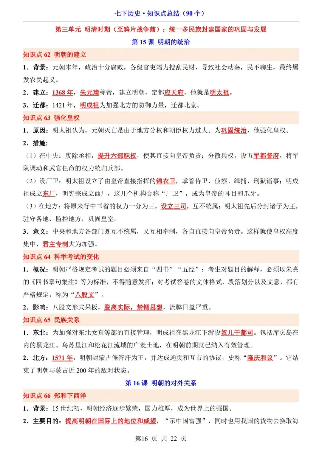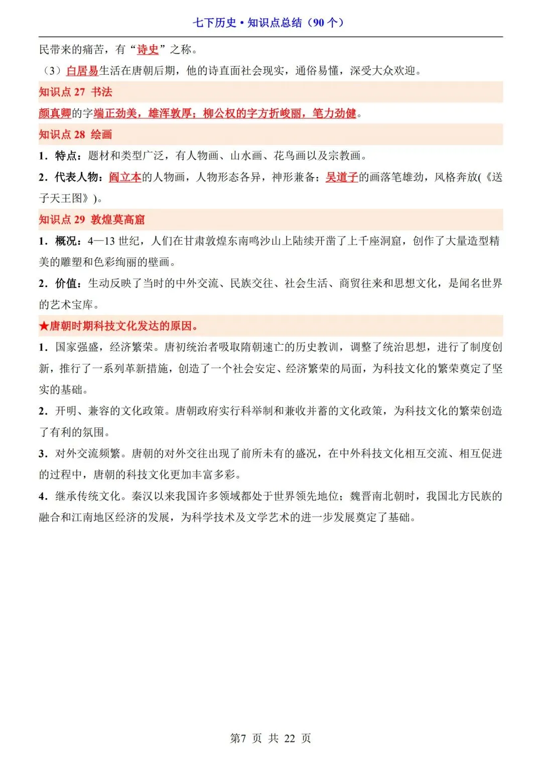 七年级下册【90个历史知识点总结】|完整电子版可打印点击蓝字,关注我们:专注分享初中全科资料:预习单、知识点、专项练习、单元期中期末试卷等领取完整电子版:①:点一点右下角的“赞”和“在看”,感谢②:首先【关注】公众号,再点【发消息】输入编号:七年级专注分享拔尖资料爱润童心,智引成长