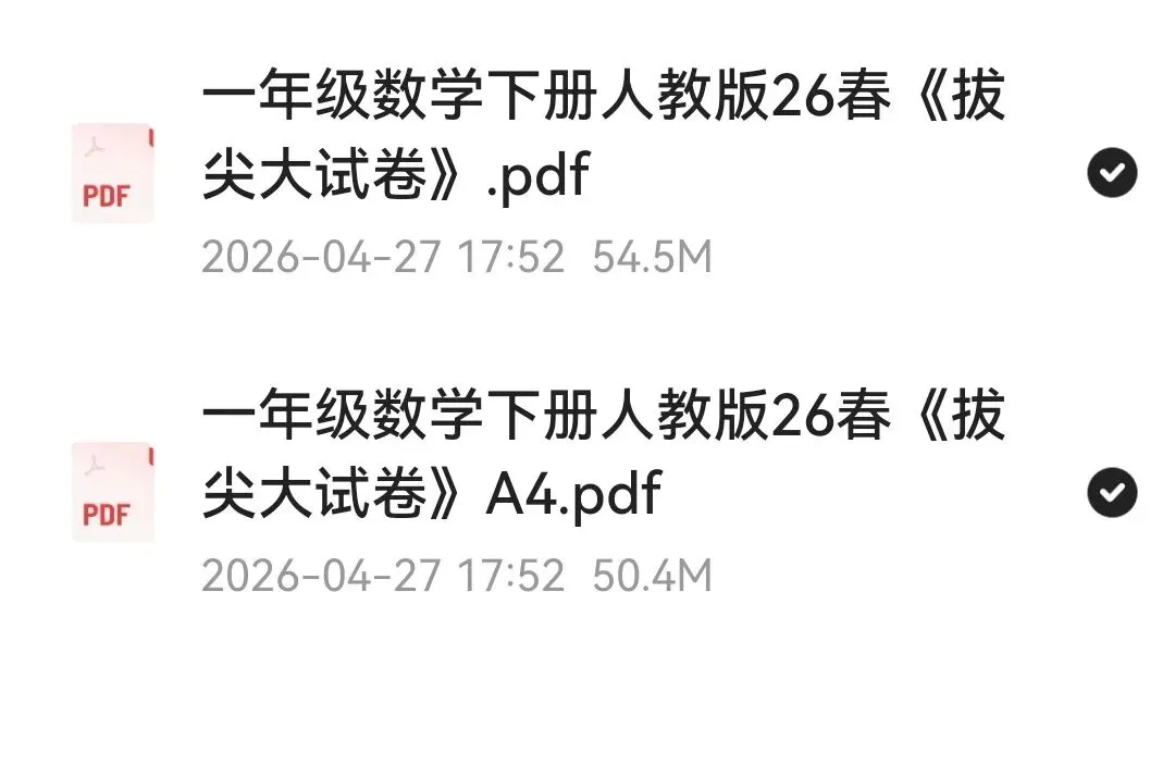 一年级数学下册人教版26春《拔尖大试卷》