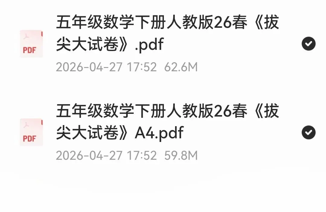 五年级数学下册人教版26春《拔尖大试卷》