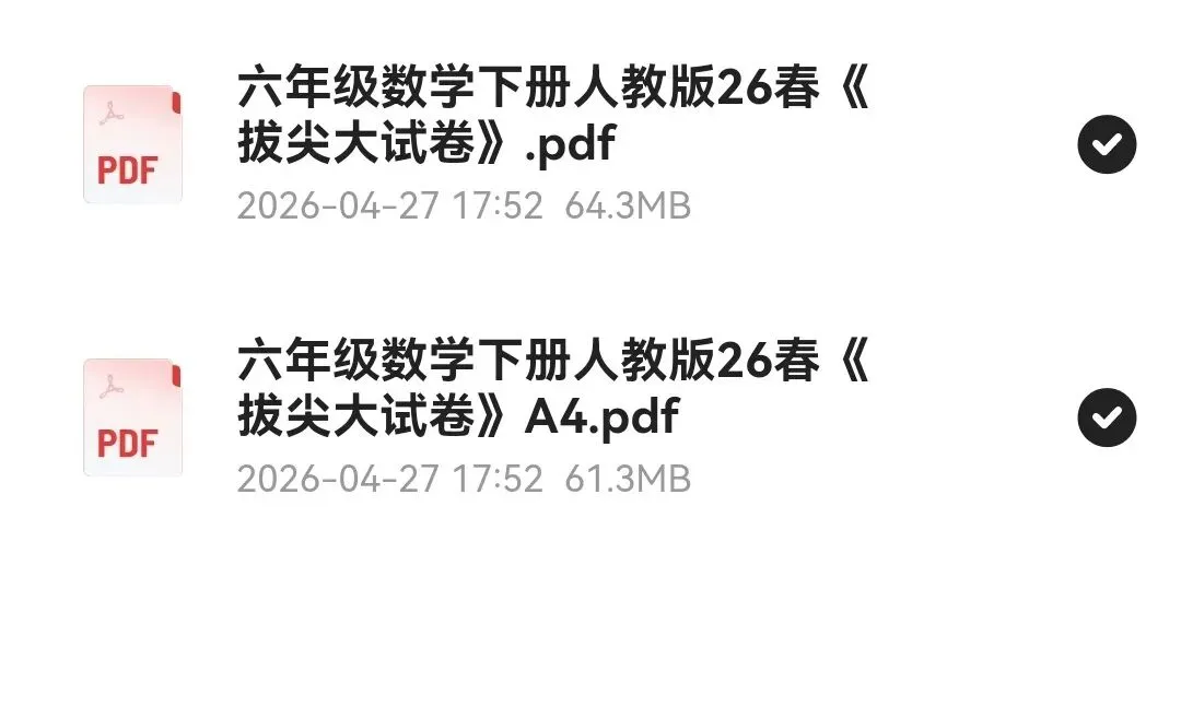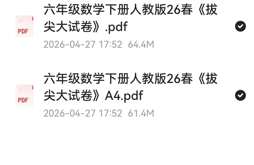 📗📗26春《拔尖大试卷》1-6年级下册数学人教版