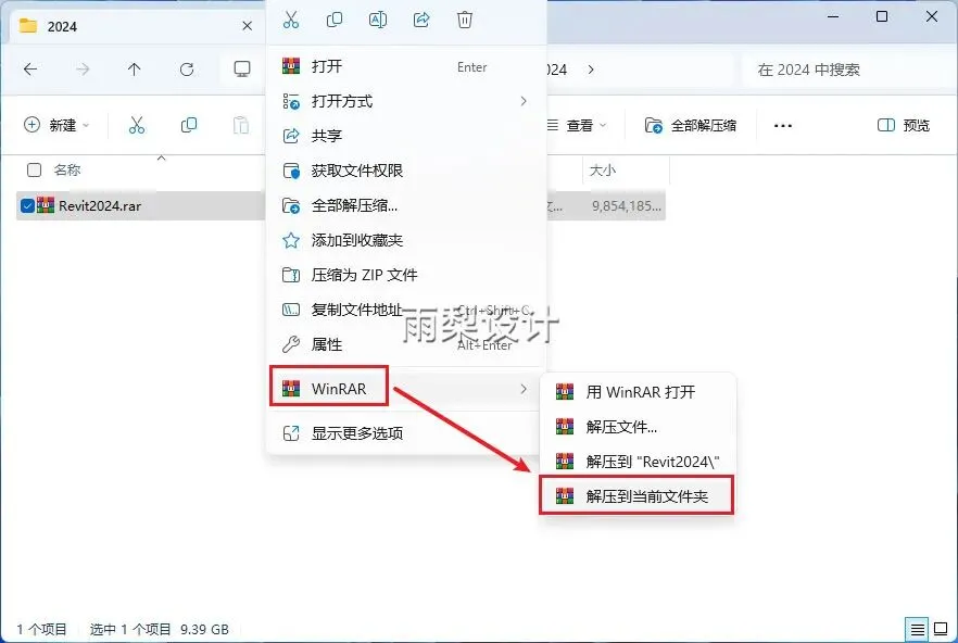 1.右键【下载的安装包】选择【解压当前文件夹】