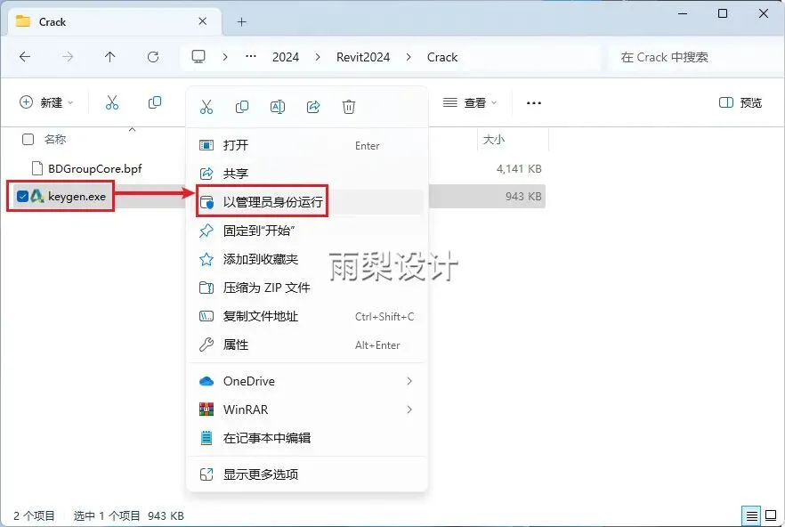 13.右键【keyge.exe】选择【以管理员身份运行】