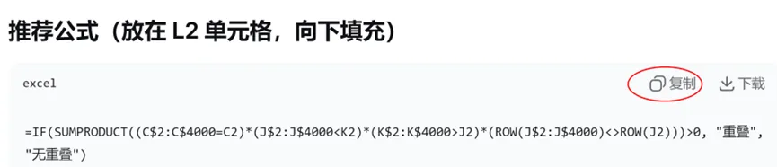 手动检查几千行数据显然不现实。别担心,用 Excel 结合AI的智能提示,只需一个公式,就能自动标出所有时间重叠的记录。