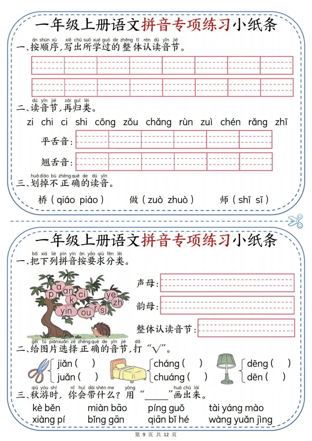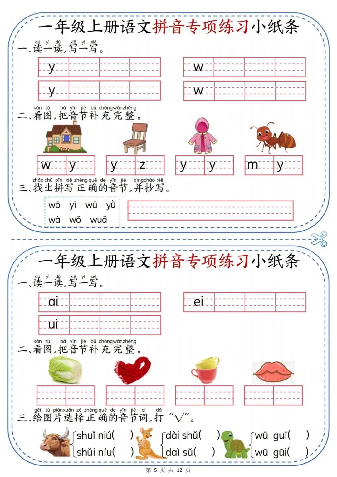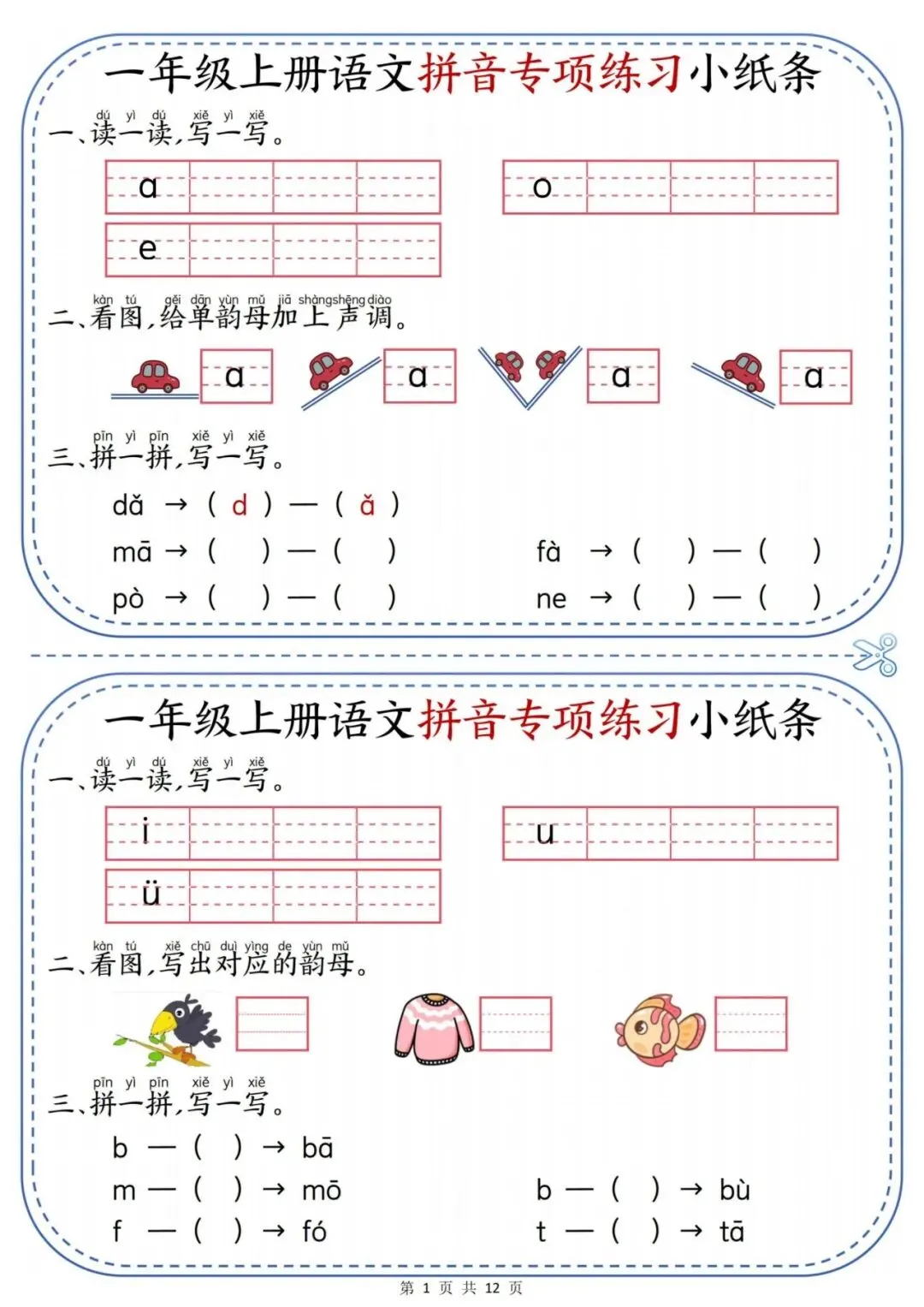 一年级上册语文拼音专项练习小纸条.PDF (页)