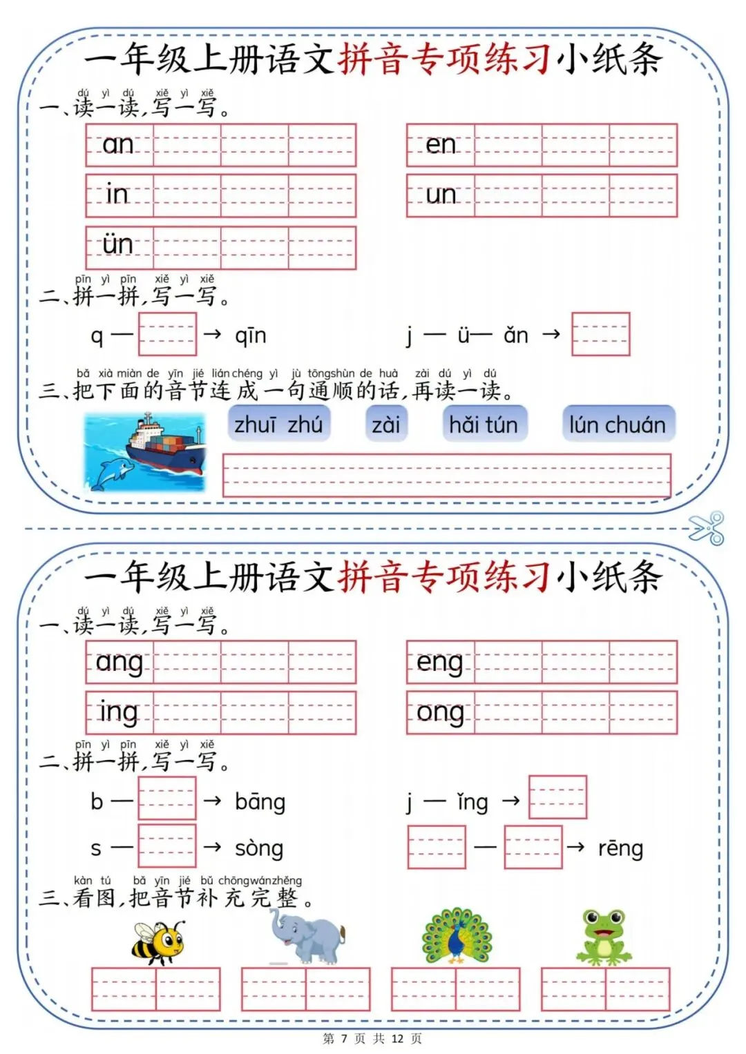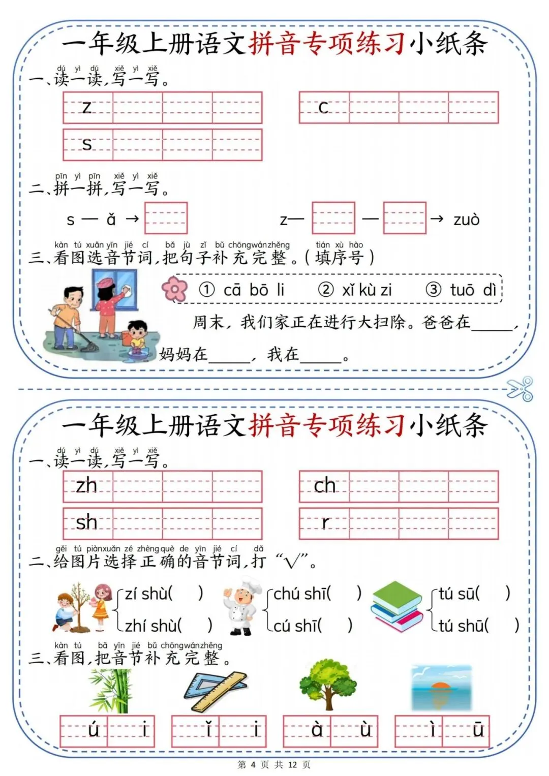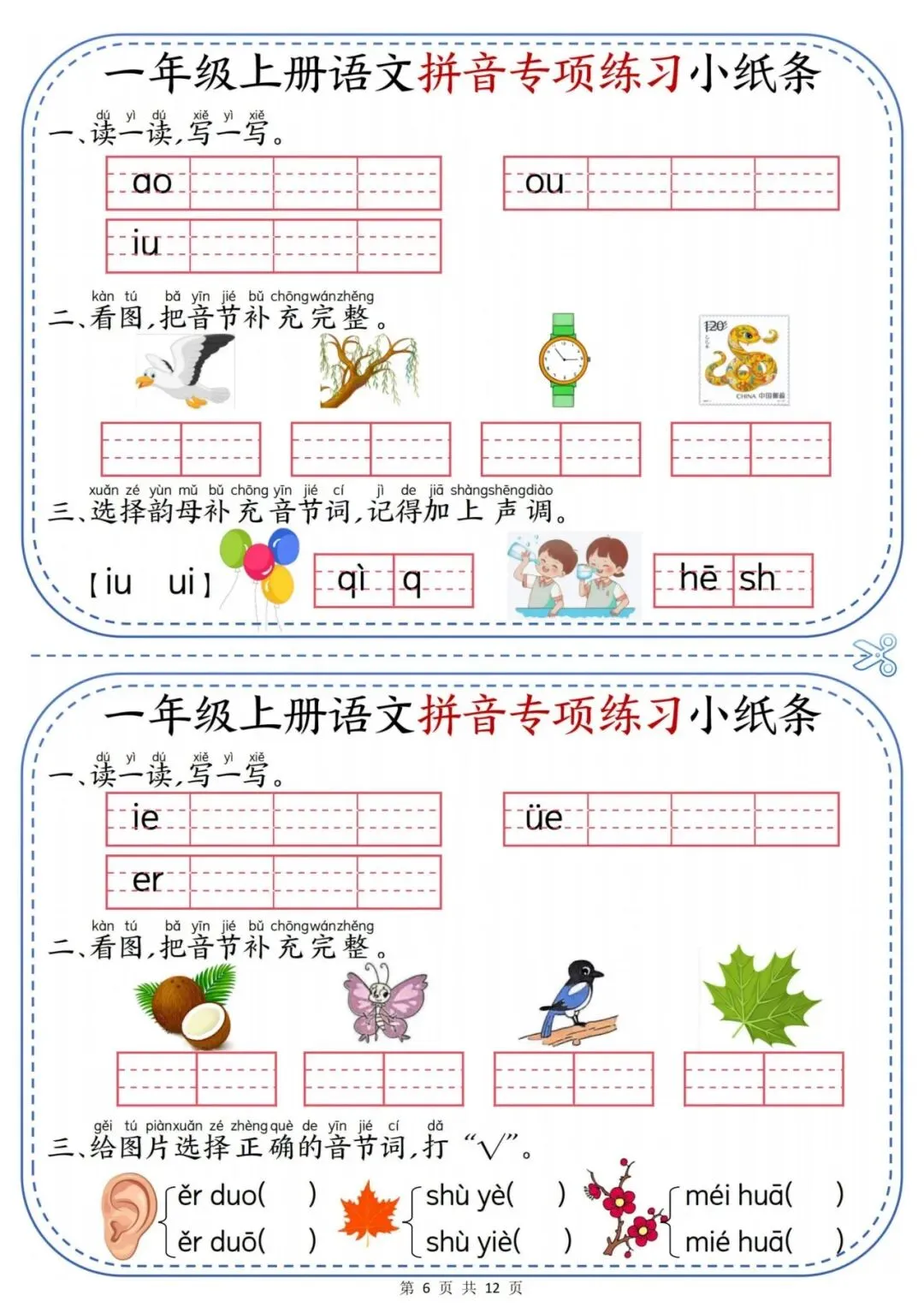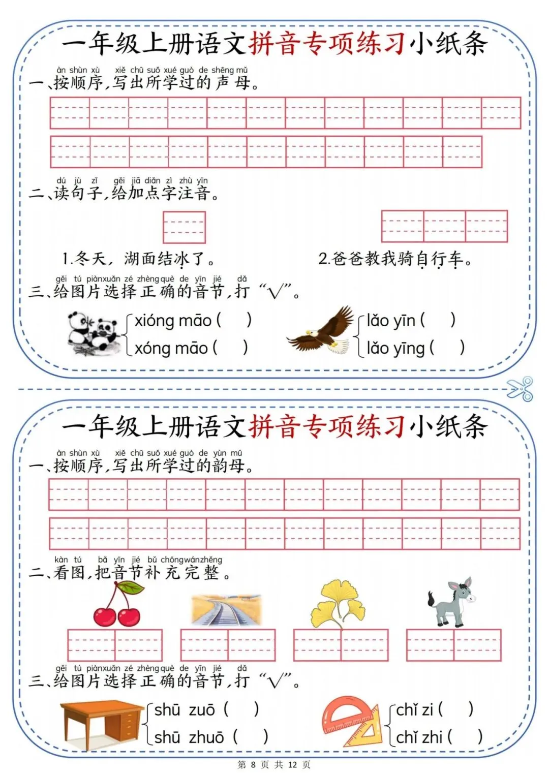 一年级上册语文拼音专项练习小纸条.PDF (页)