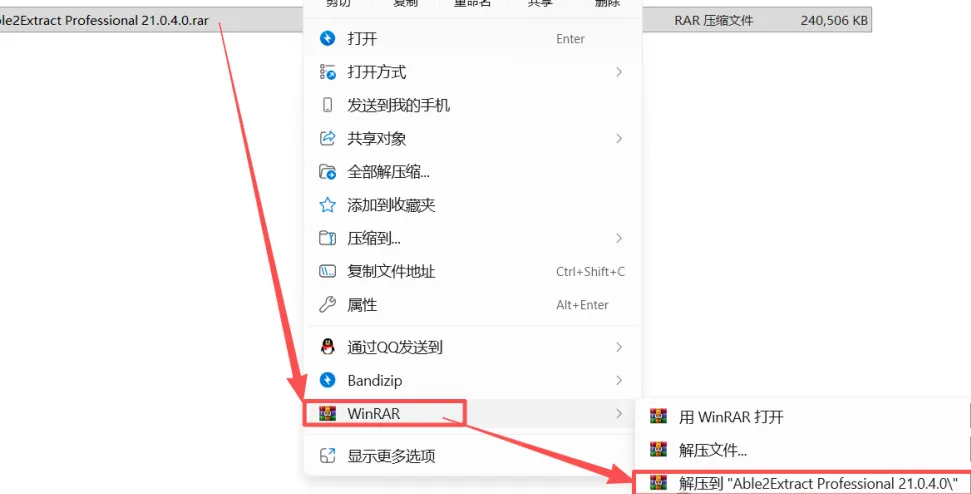 1、右击【Able2Extract Professional 21.0.4.0】,选择【解压到