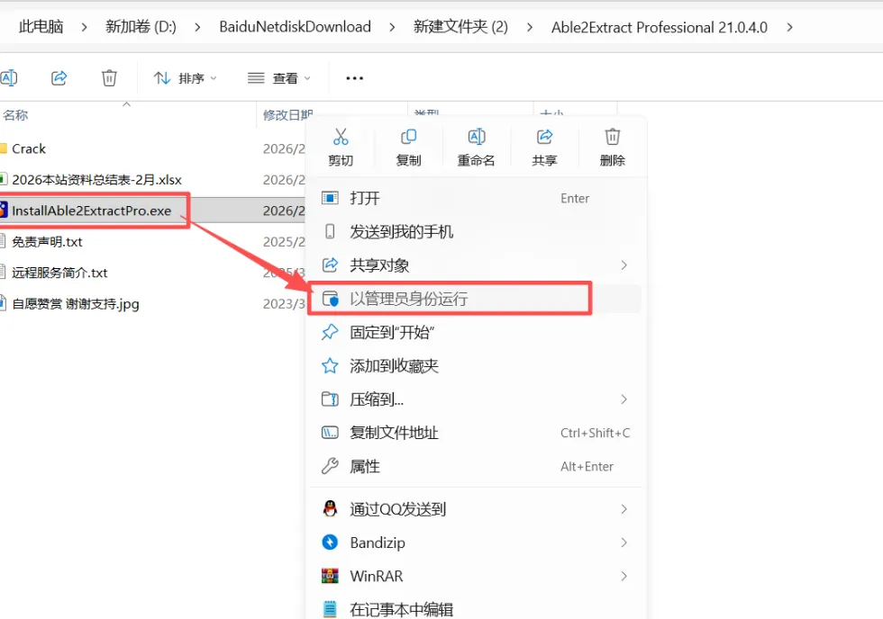 3、以管理员身份运行【InstallAble2ExtractPro】。