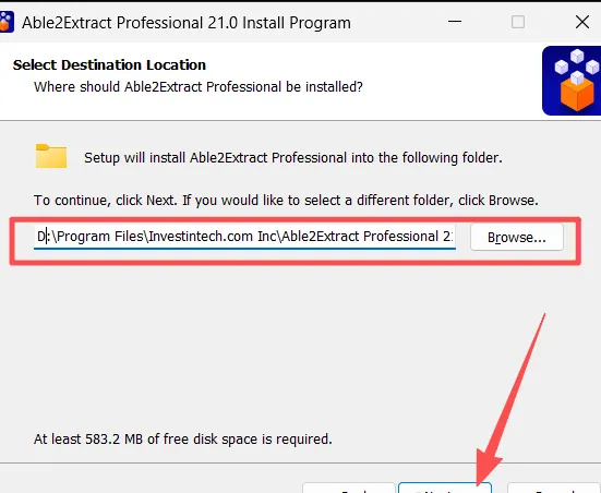 5、修改安装位置至D盘,点【Next】。