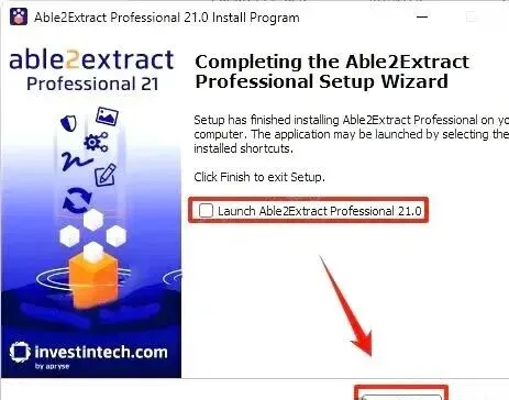8、取消勾选【Launch Able2Extract...】,点【Finish】。