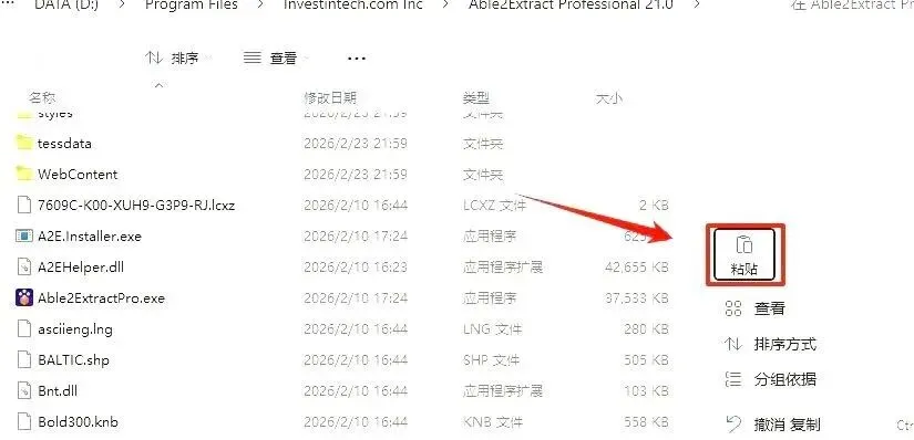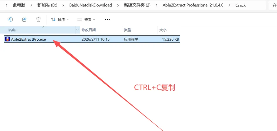 9、进入解压后的【Able2Extract Professional 21.0.4.0\Crack】文件夹内,复制【Able2ExtractPro】。