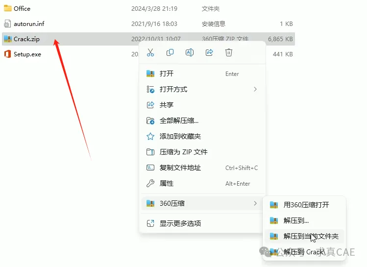 8、任选Office或者Visio安装包文件夹中的Crack.zip进行解压。