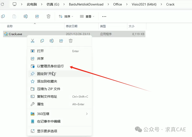 9、右击解压后文件夹中的Crack.exe,以管理员身份运行