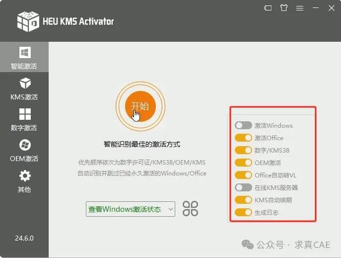 10、根据个人情况选择右侧需要激活项,然后单击开始