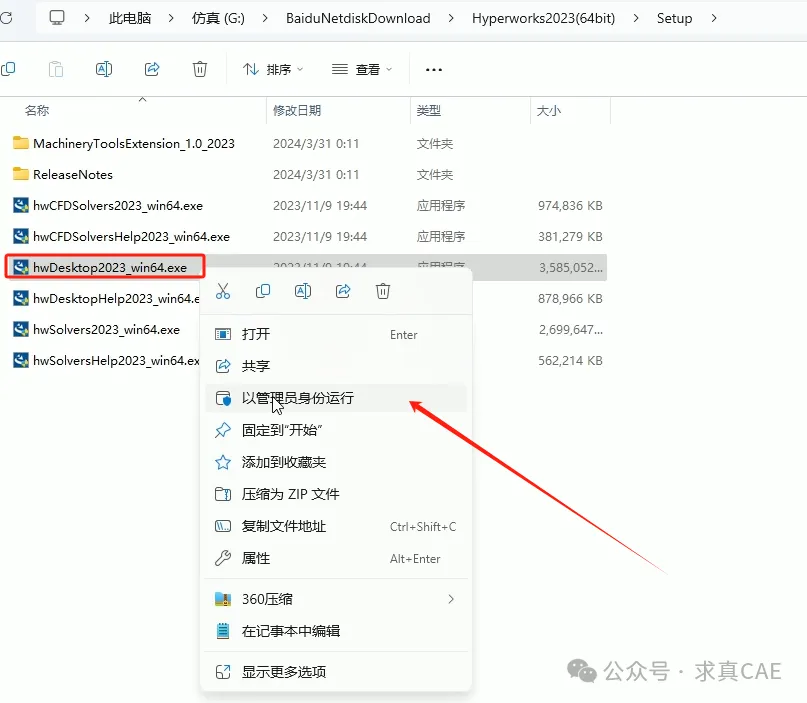 2、鼠标右键单击Setup文件夹下的hwDesktop2023_win64.exe,以管理员身份运行