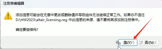 15、鼠标左键双击altair_licensing.reg,添加注册信息,单击是