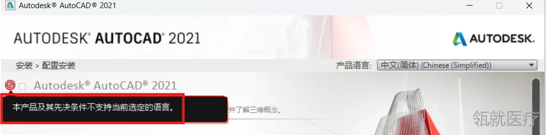 报错情况2:本产品及先决条件不支持当前选定的语言