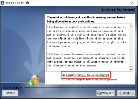5、勾选【I accept the terms in the license agreement】,然后点击【Next】。
