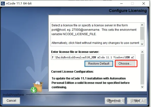 11、点击【Choose】选择安装包中“license”文件夹下的许可证文件“license.dat”打开,然后点击【Next】。
