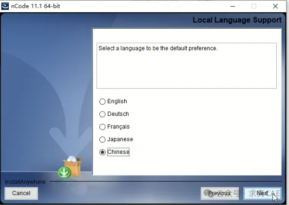 12、选择软件的语言,默认为英语,这里也可以选择【Chinese】,然后点击点击【Next】。