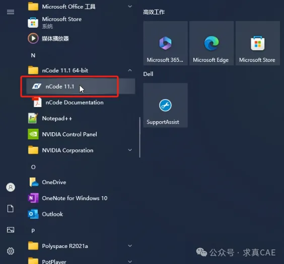 15、在电脑开始菜单找到安装完成的nCode图标,点击打开。