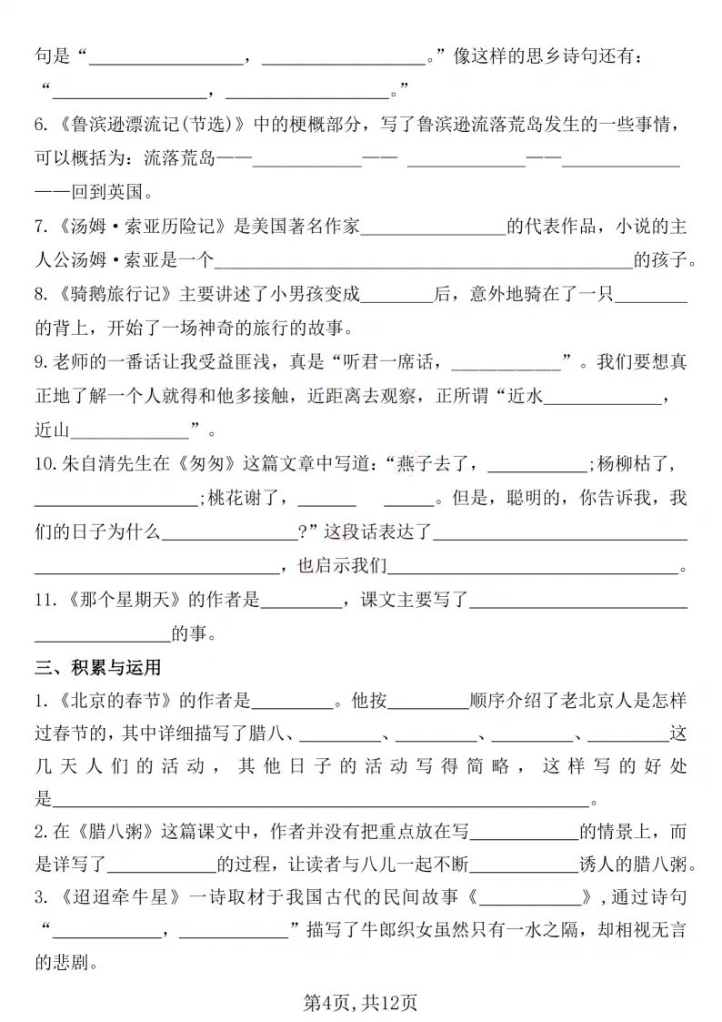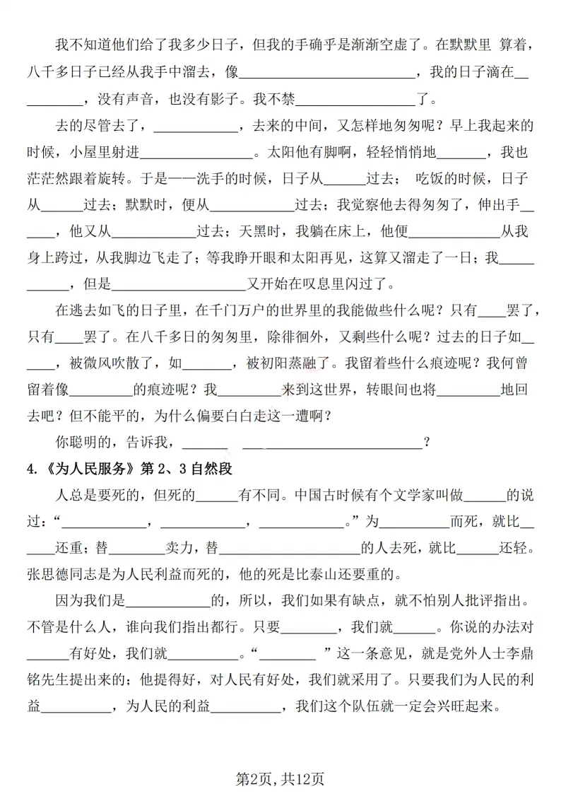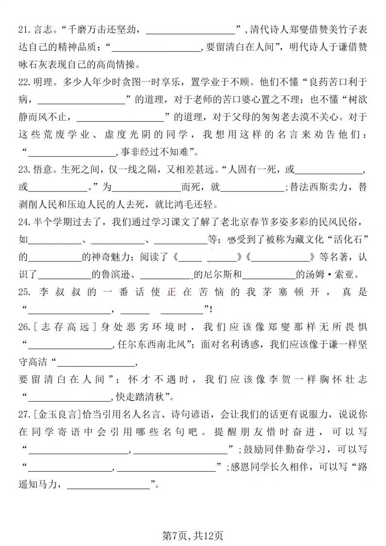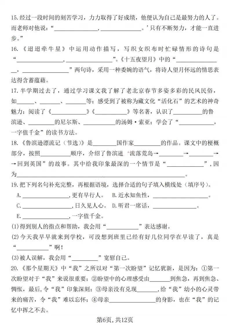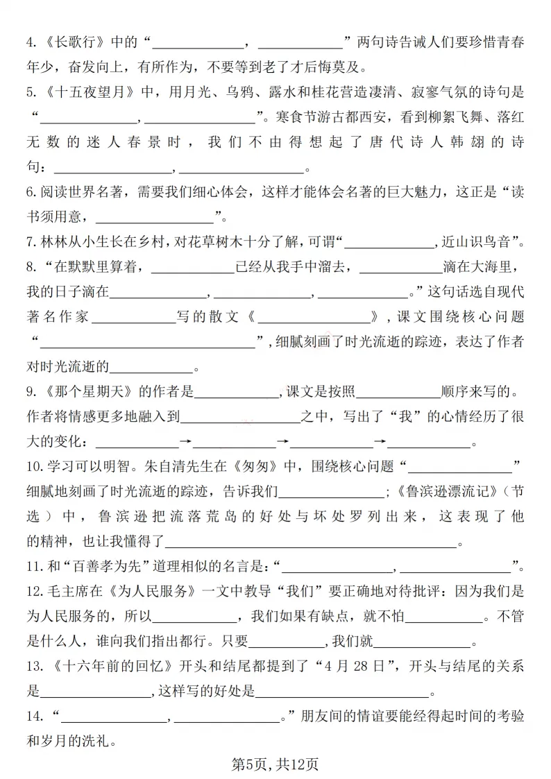 六年级期中默写总丢分、古诗背不熟、课文记不牢?12 页默写表太省心!古诗、日积月累、重点课文、理解填空全覆盖,考前默一遍,基础分全拿稳。