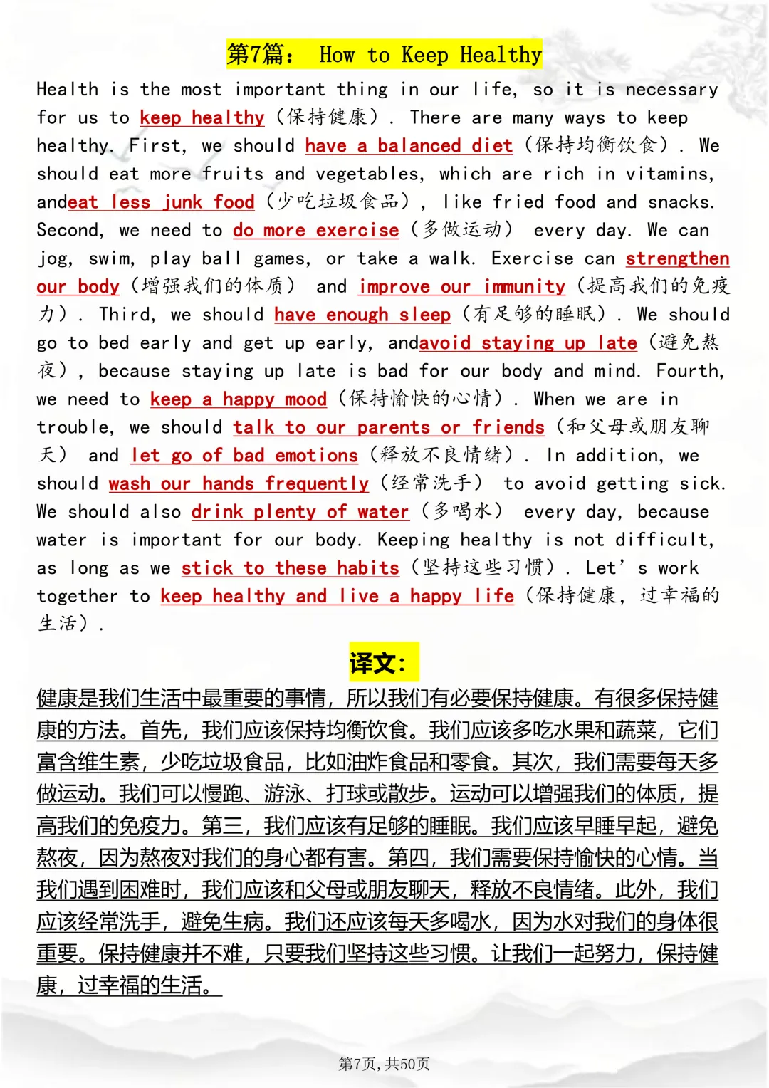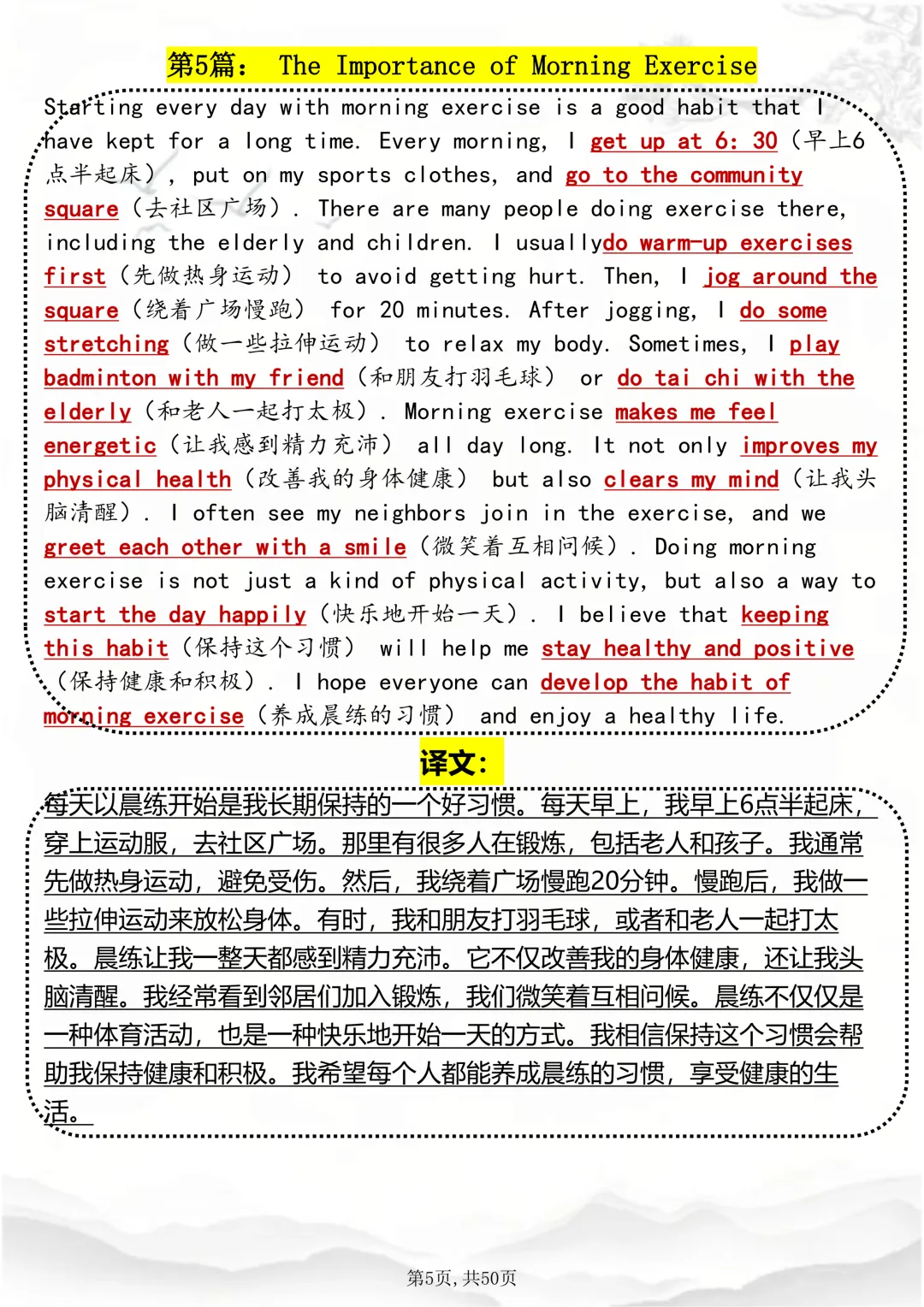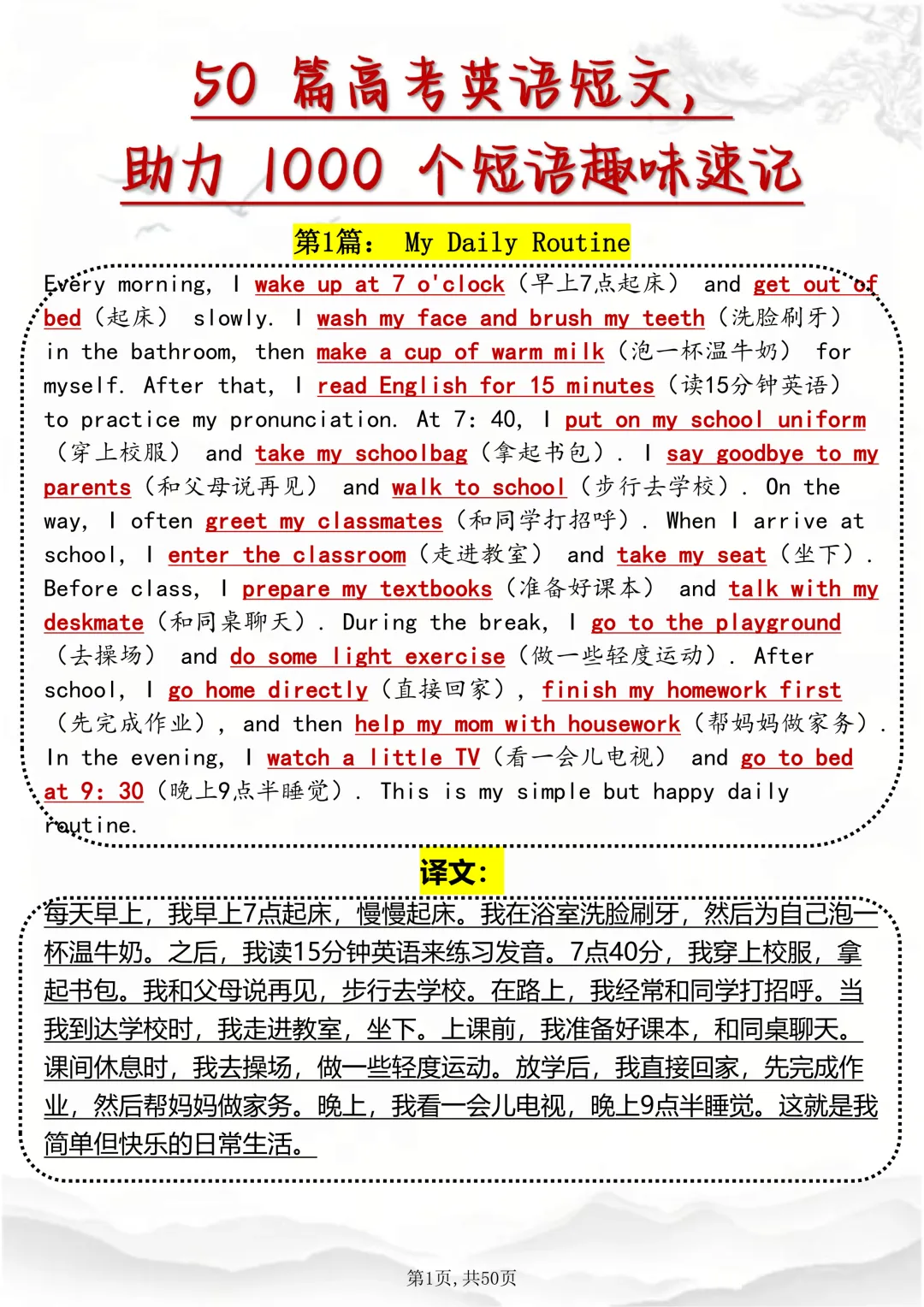可打印,英语写作随时可用的1000个日常短语趣味速记因篇幅有限,点击我的头像私信我回复 “资料获取” 就可以领取 word 电子版。以下是部分资料内容,完整高清版的发送私信即可。本篇文章一共 50 页,完整版可打印↓↓↓