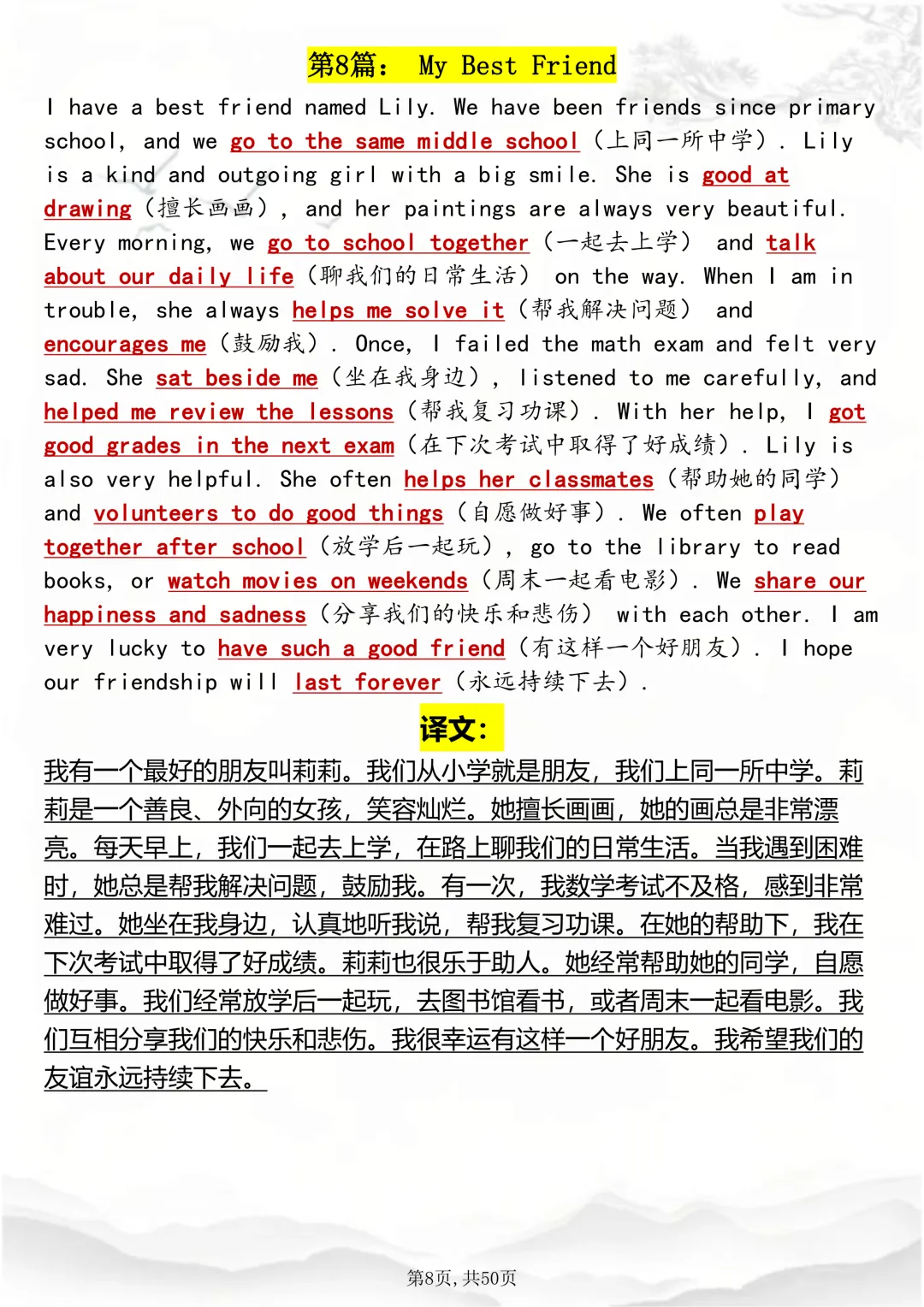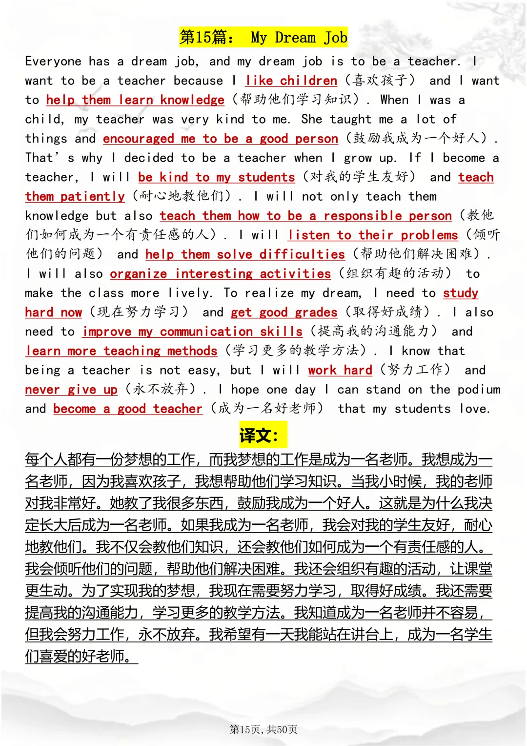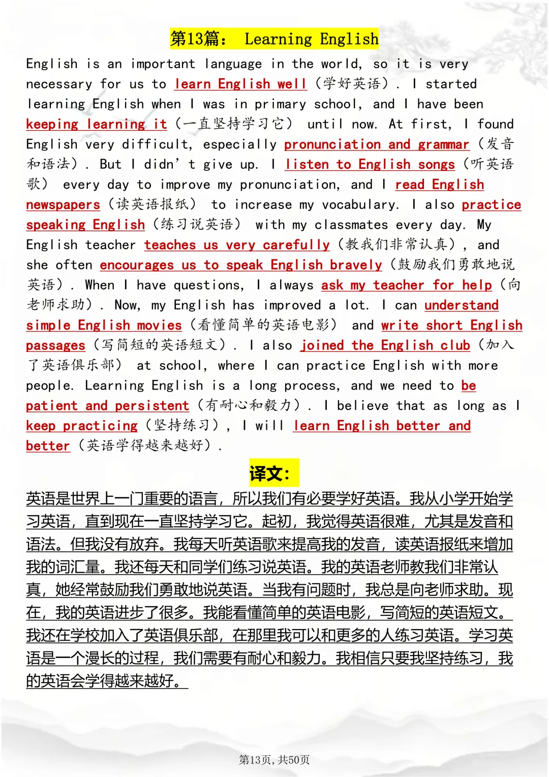 可打印,英语写作随时可用的1000个日常短语趣味速记因篇幅有限,点击我的头像私信我回复 “资料获取” 就可以领取 word 电子版。以下是部分资料内容,完整高清版的发送私信即可。本篇文章一共 50 页,完整版可打印↓↓↓