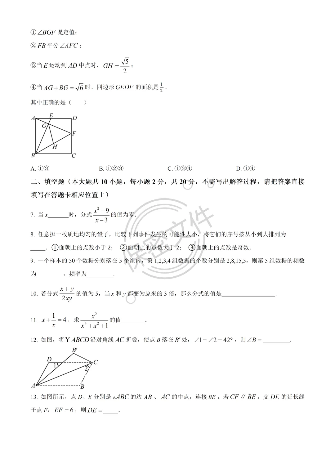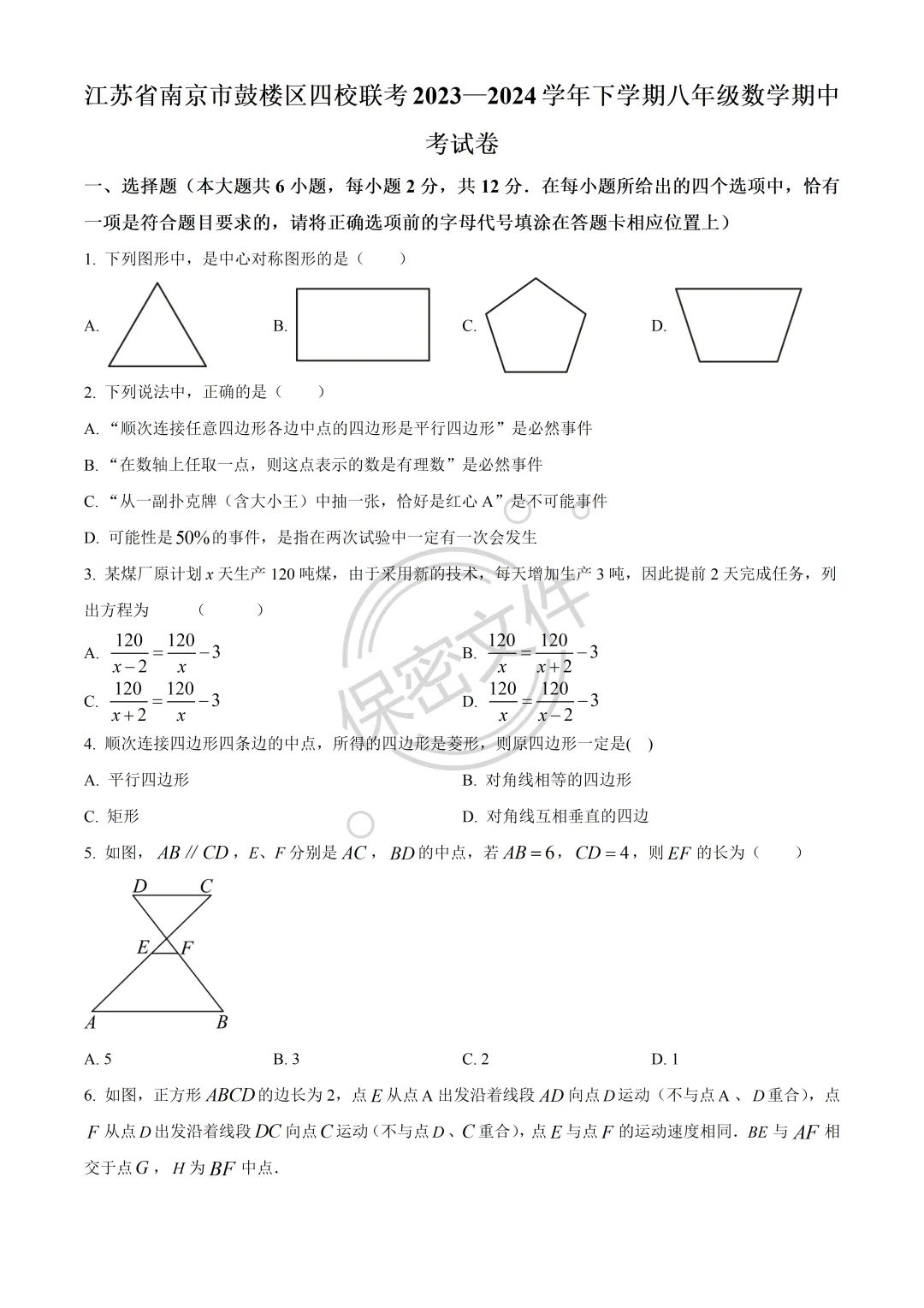 今日分享:23-24年南京市鼓楼区四校联考八年级下学期数学期中考试卷,可打印完整版!
