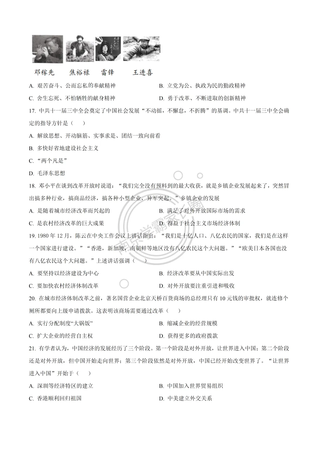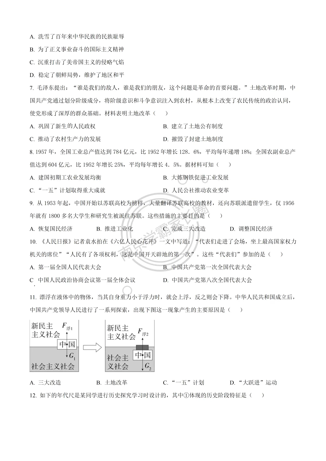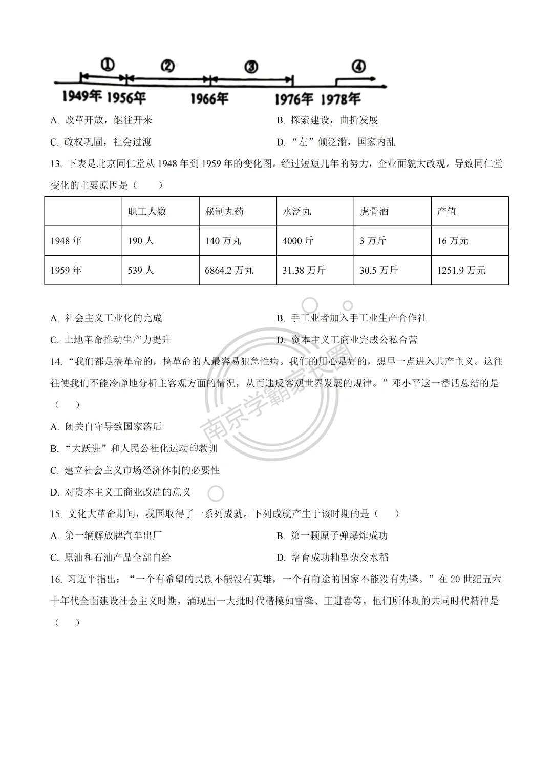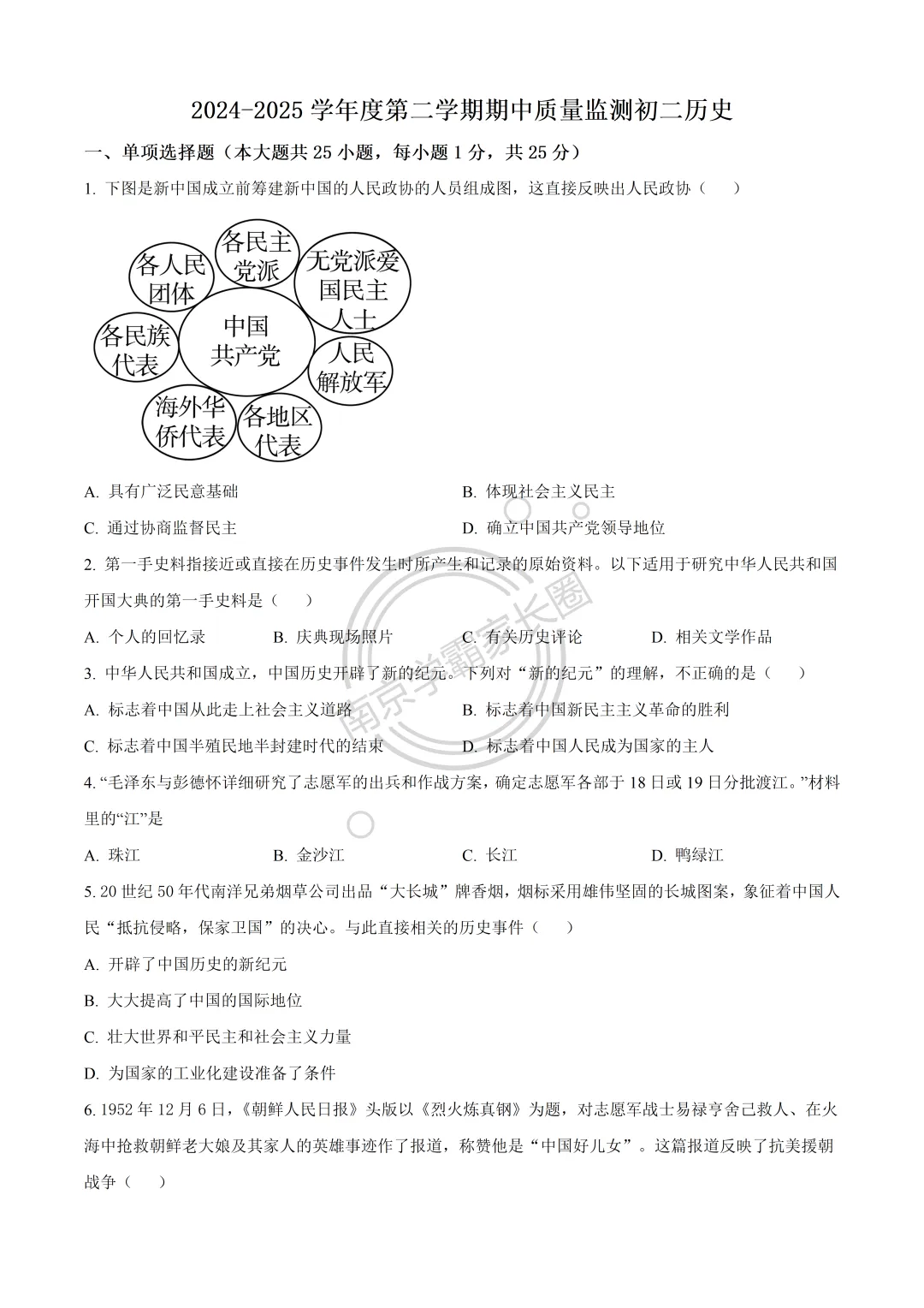 今日分享:24-25年南京玄武区八年级下学期4月期中历史试题,可打印完整版!