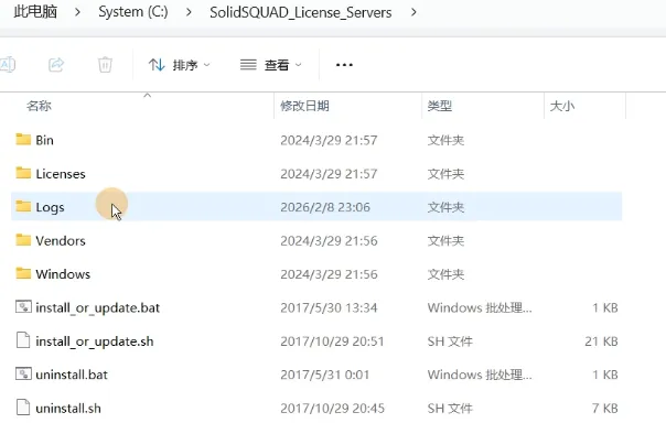 3、旧版本许可证卸载:进入旧版本的许可证安装路径,右键单击uninstall.bat,选择以管理员身份运行,等待程序运行结束后即可删除对应文件夹。