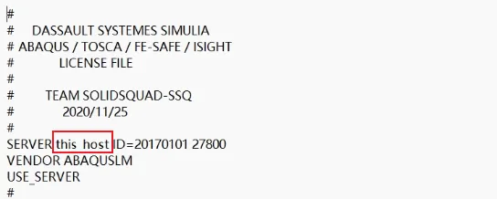 5、以记事本形式打开ABAQUSLM.lic,将this_host替换为个人电脑名(个人电脑名可通过右键单击“我的电脑”查询)
