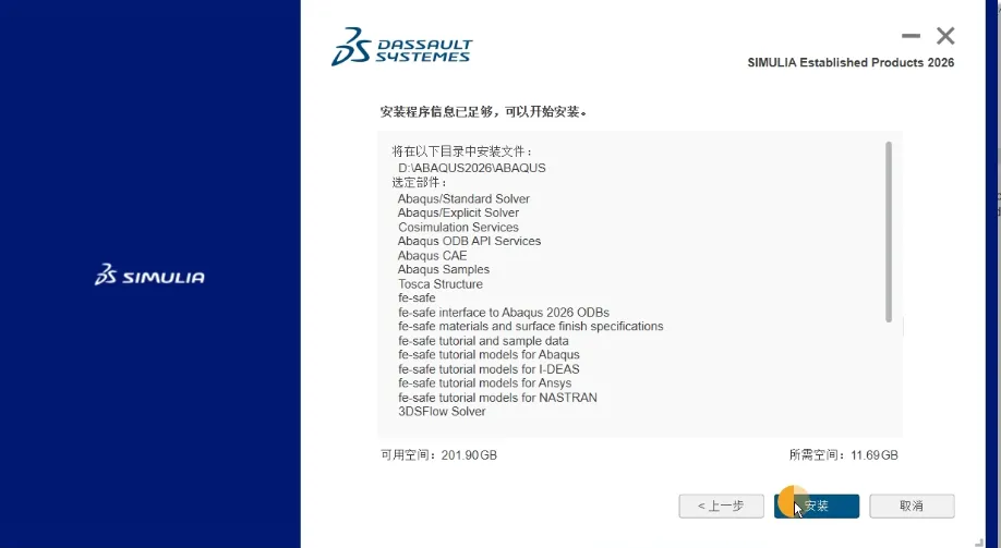 本教程安装在win11专业版系统,亲测有效,本教程属于完整安装(包括ABAQUS主程序、fesafe、Isight以及本地帮助文档),实测占用存储21GB,不需要安装其他插件的话,硬盘占用会略有不同,最好有30GB以上空间。
