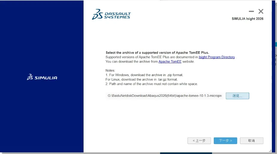50、单击浏览,找到Setup文件夹下的压缩包apache-tomee-10.1.3-microprofile.zip,然后打开,单击下一步
