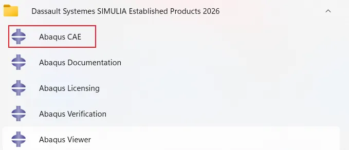 55、在开始程序中找到Dassault....文件夹下的ABAQUS CAE,单击即可启动ABAQUS2025