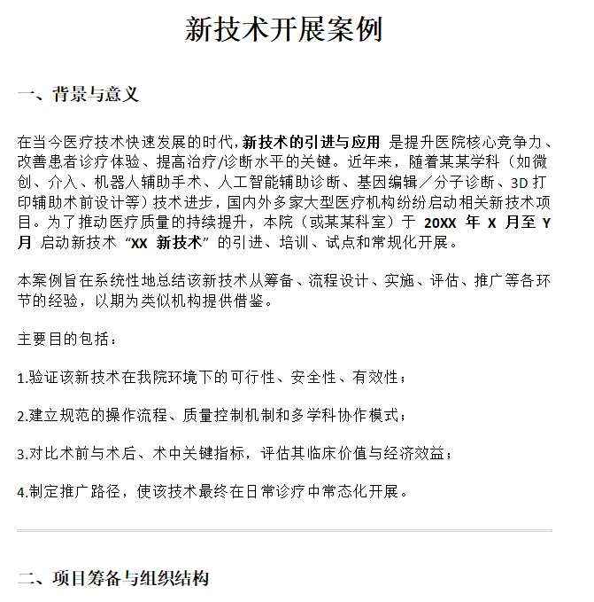 定义:指在特定范围内作为第一负责人率先开展的本专业诊疗、操作方法或推广的项目。
