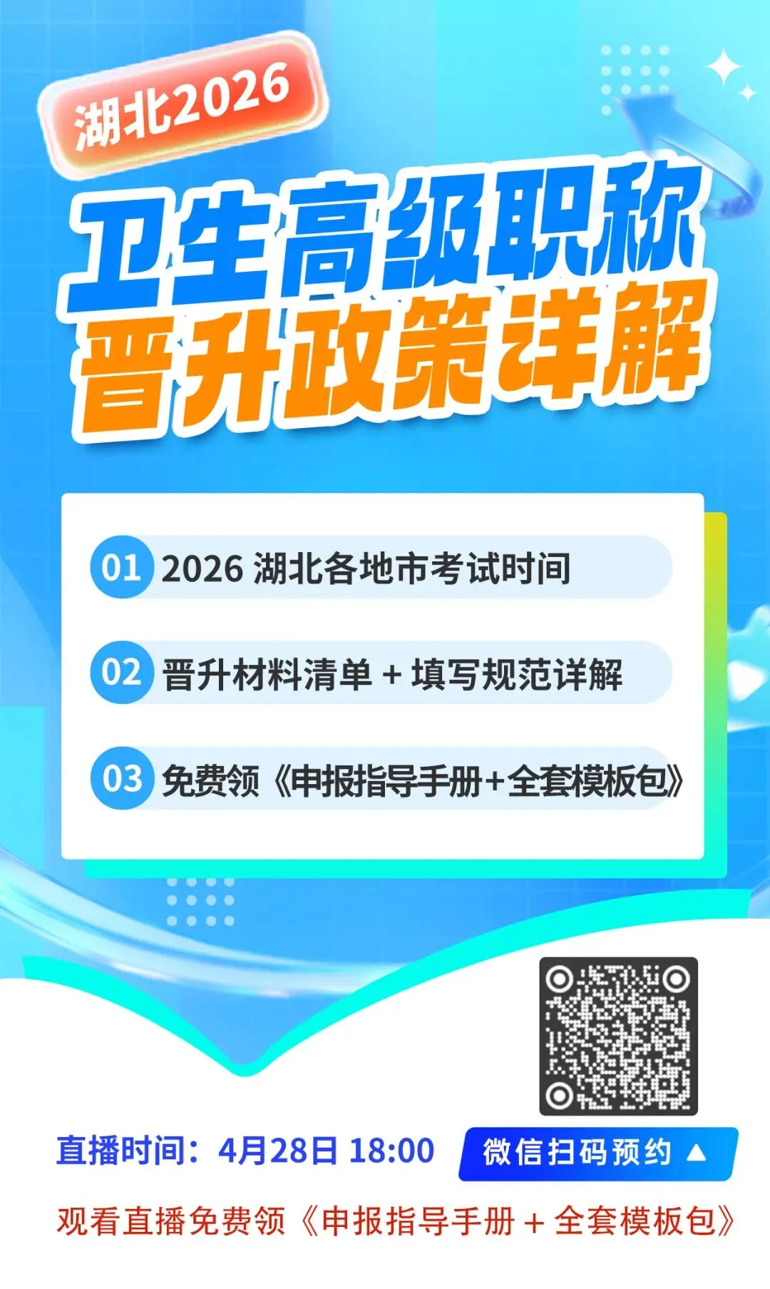 湖北省2026年度卫生高级职称申报所需材料模板、卫生考试题库、专业老师协助申报,都可长按下方海报领取: