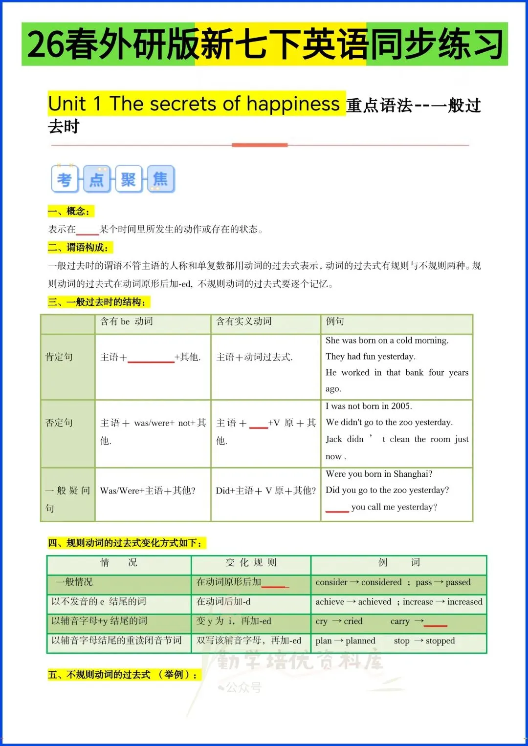 今日老师精心为同学们整理了:2026春新教材七年级下册新版外研版英语1-8单元同步练习·基础训练,电子版可打印!