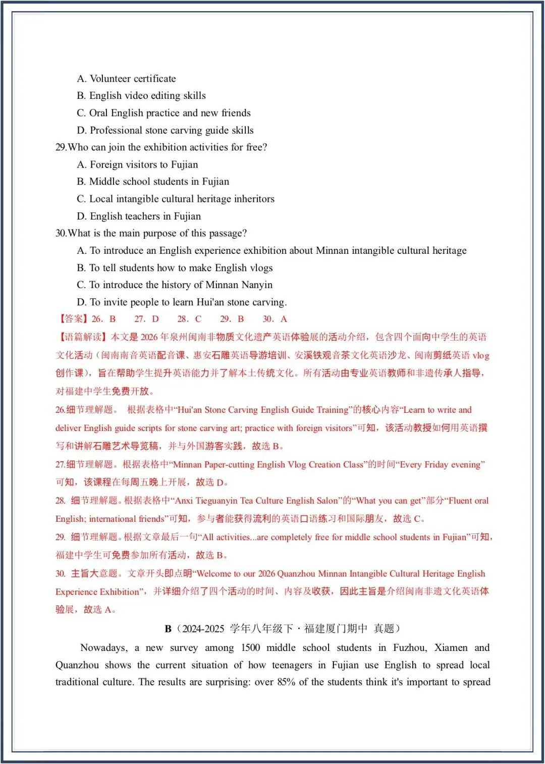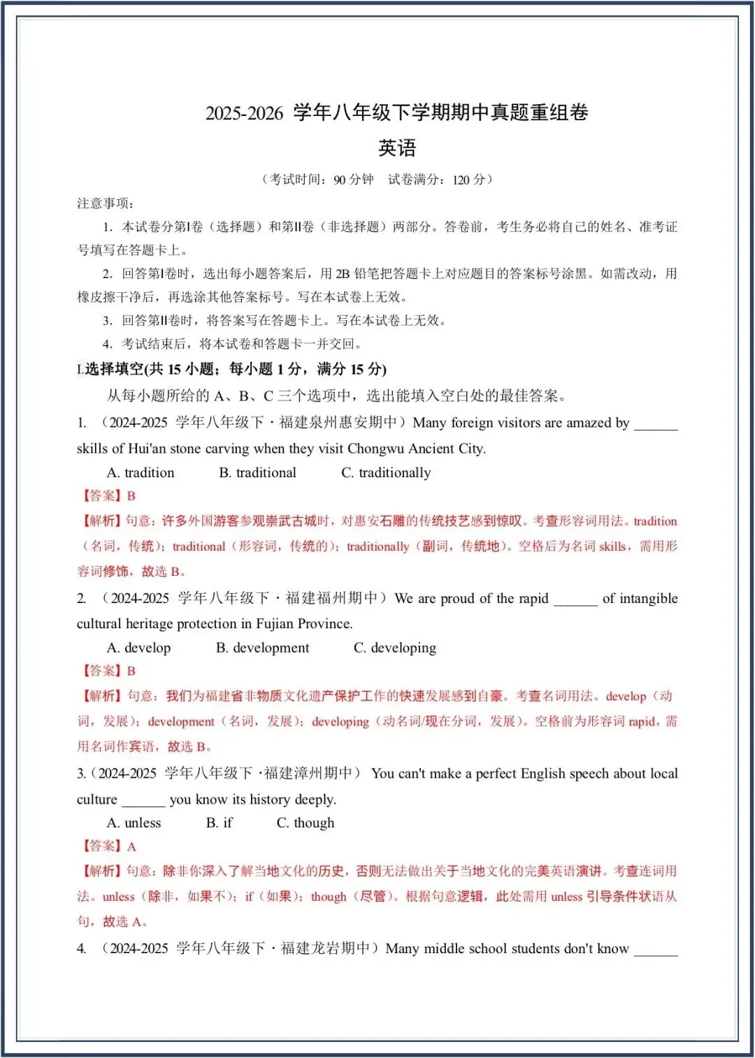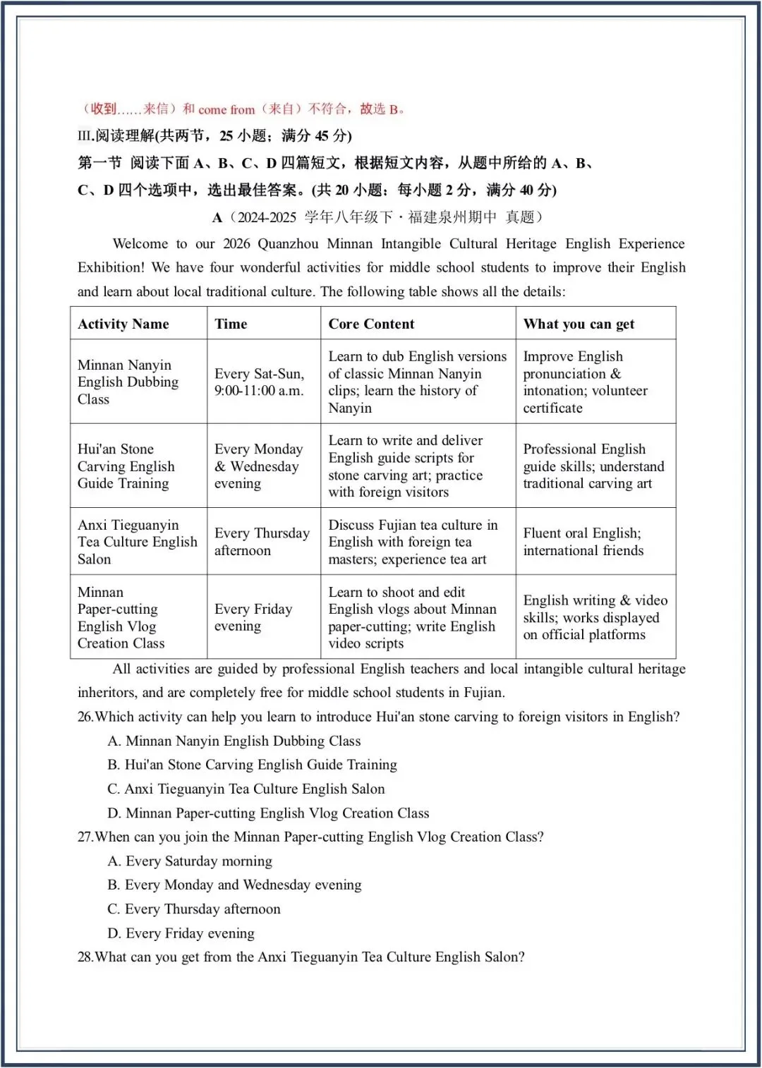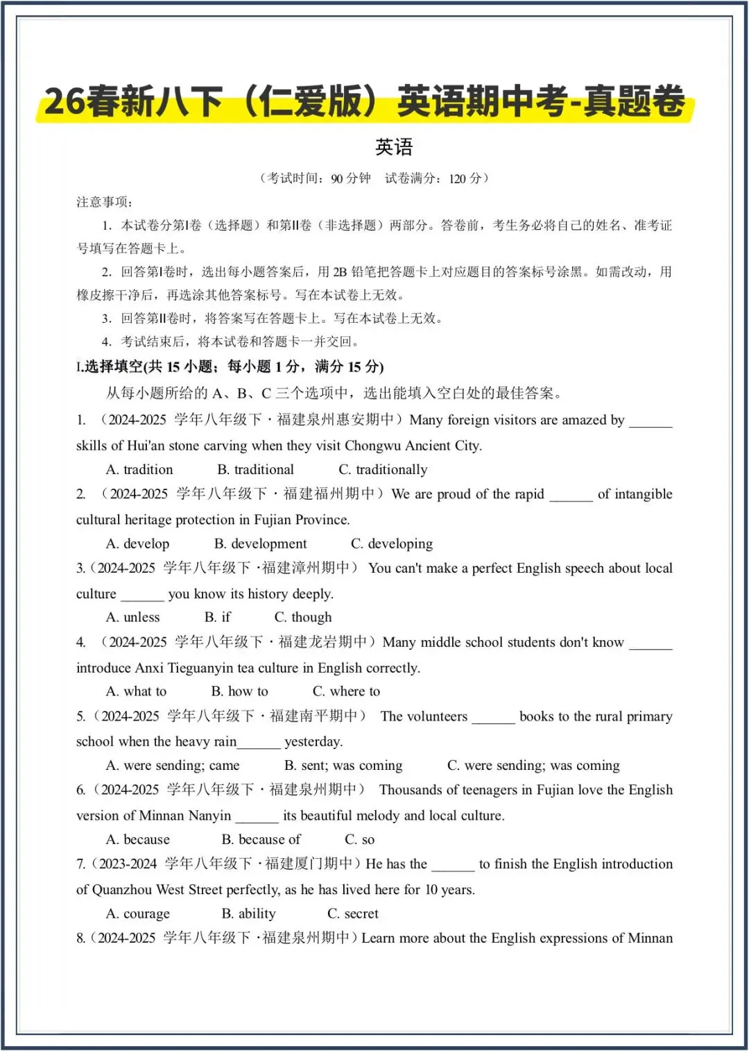 2026春新教材仁爱版八年级下册英语期中考-真题模拟卷,附答案,电子版可打印可下载