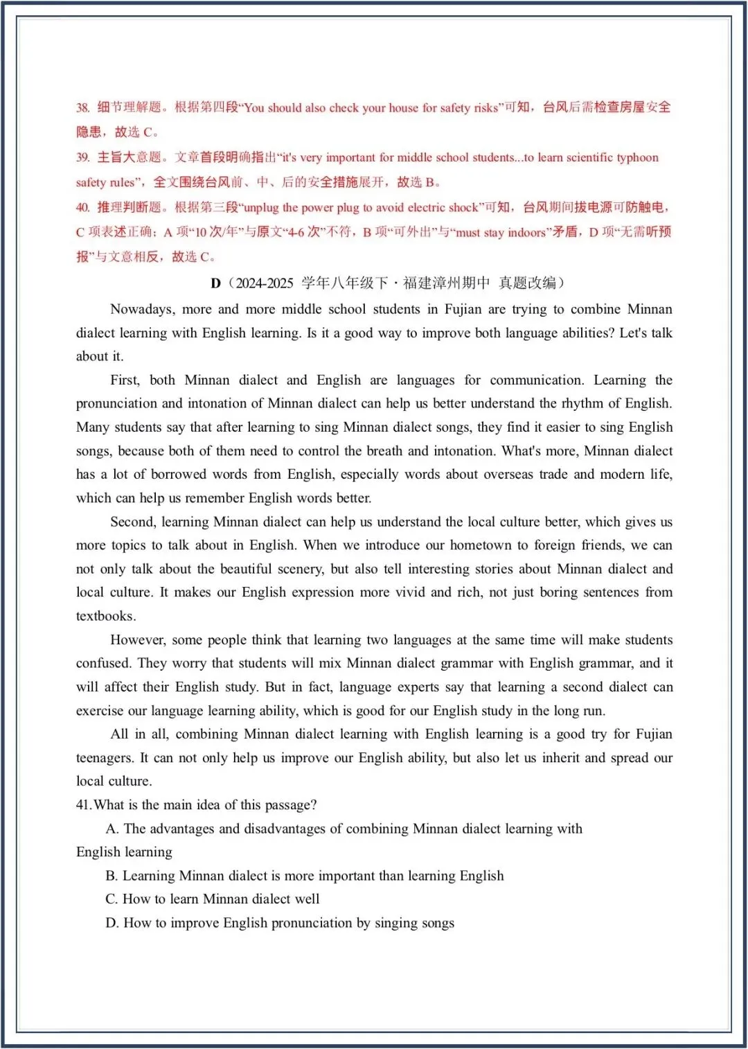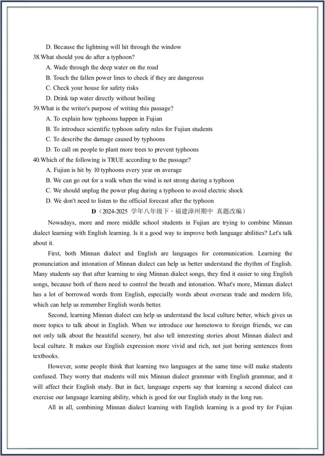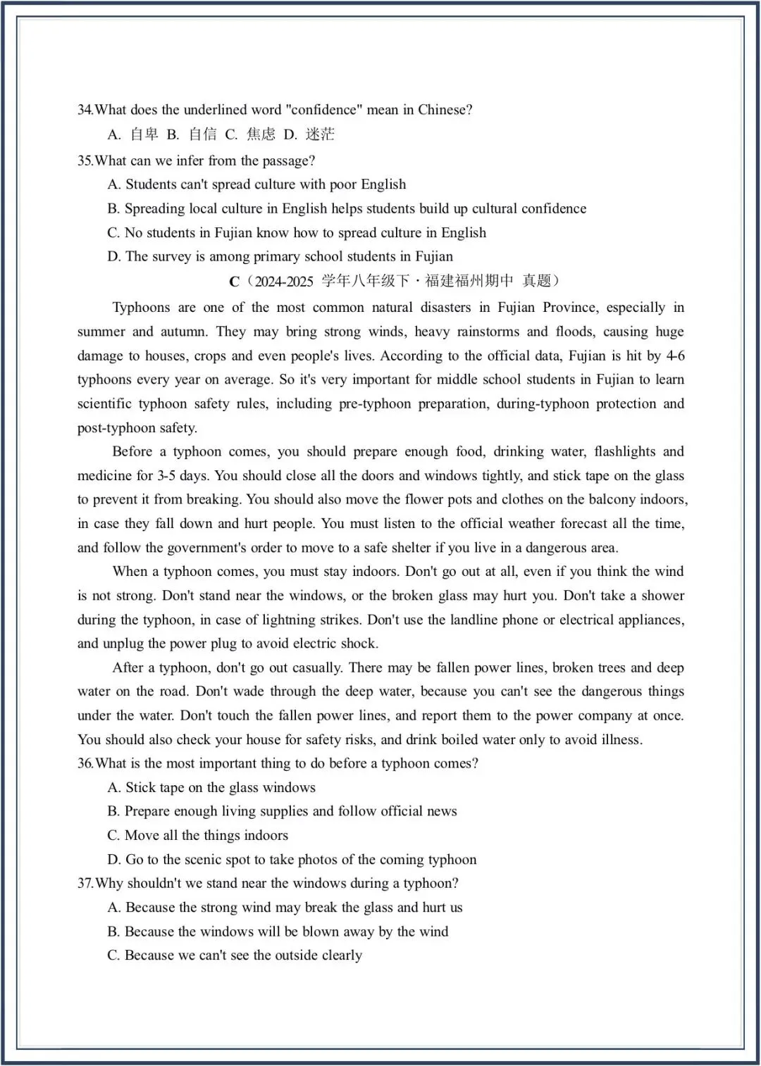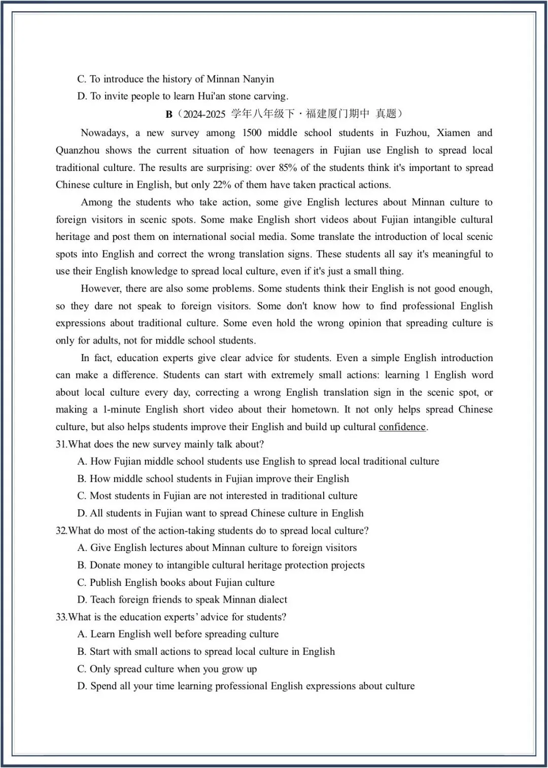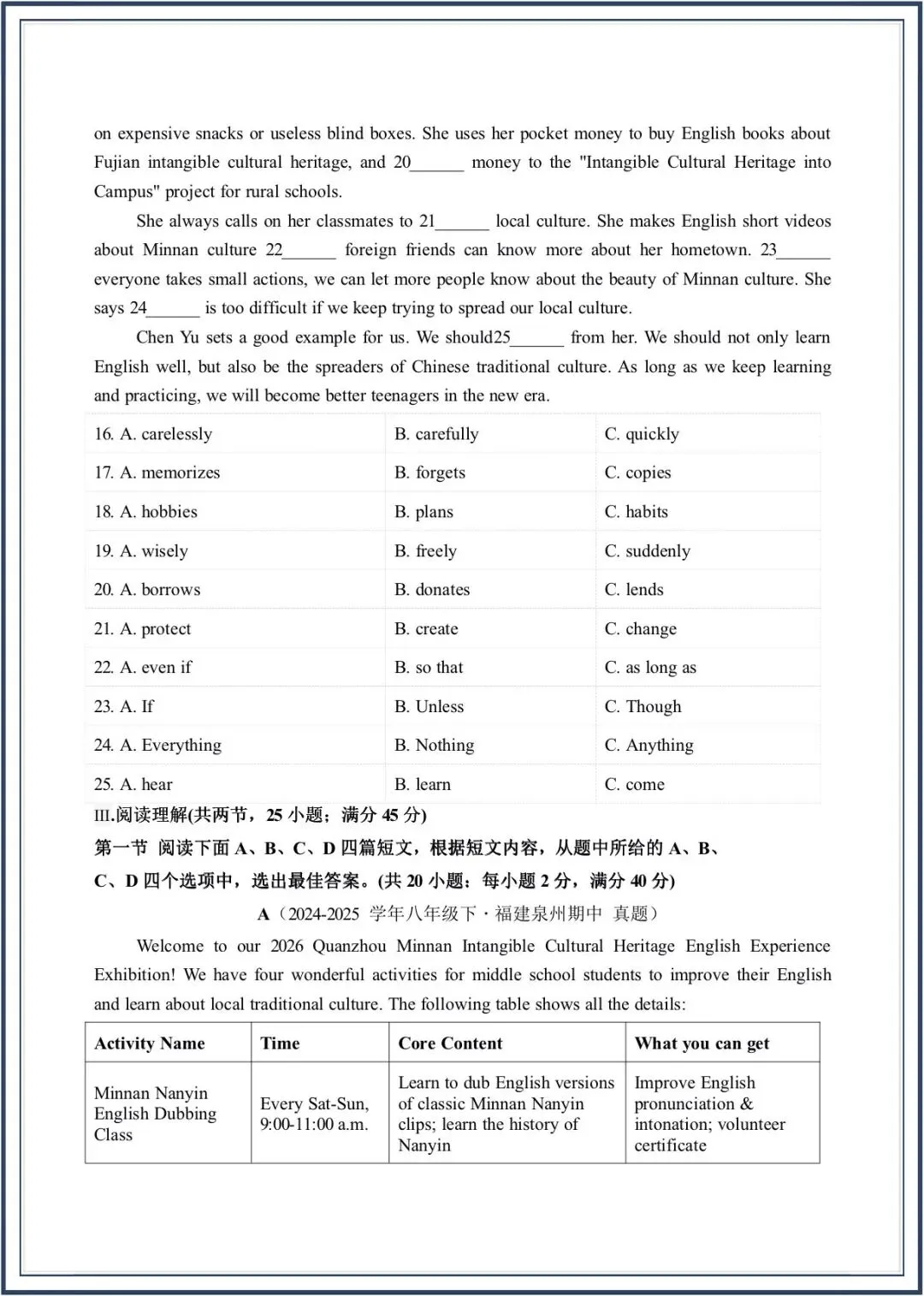 2026春新教材仁爱版八年级下册英语期中考-真题模拟卷,附答案,电子版可打印可下载