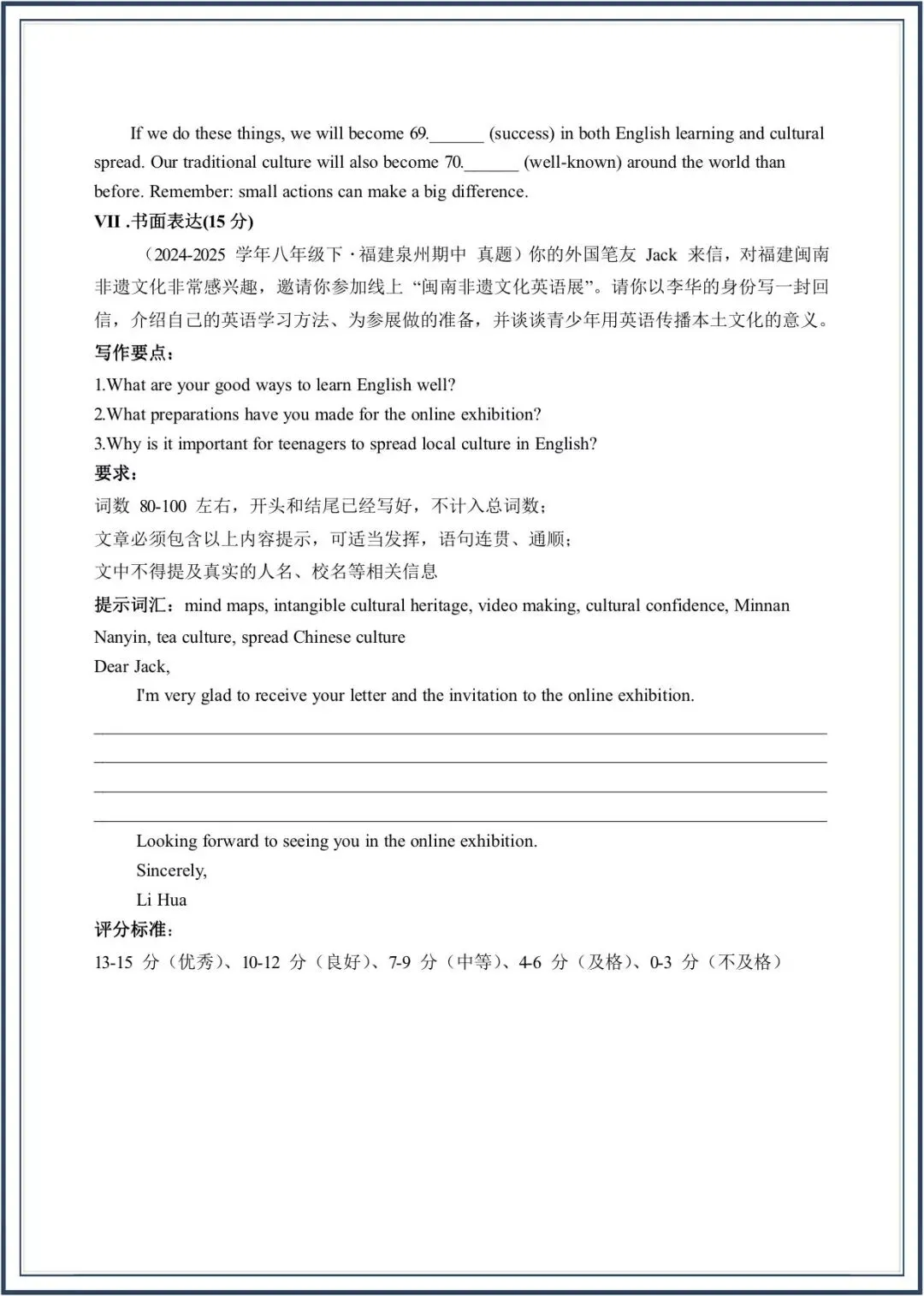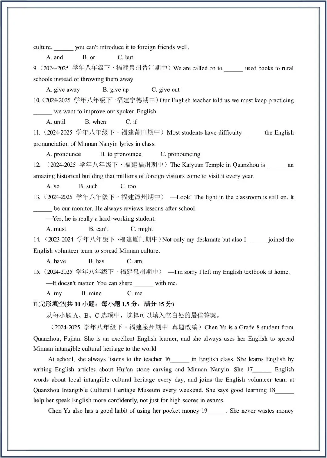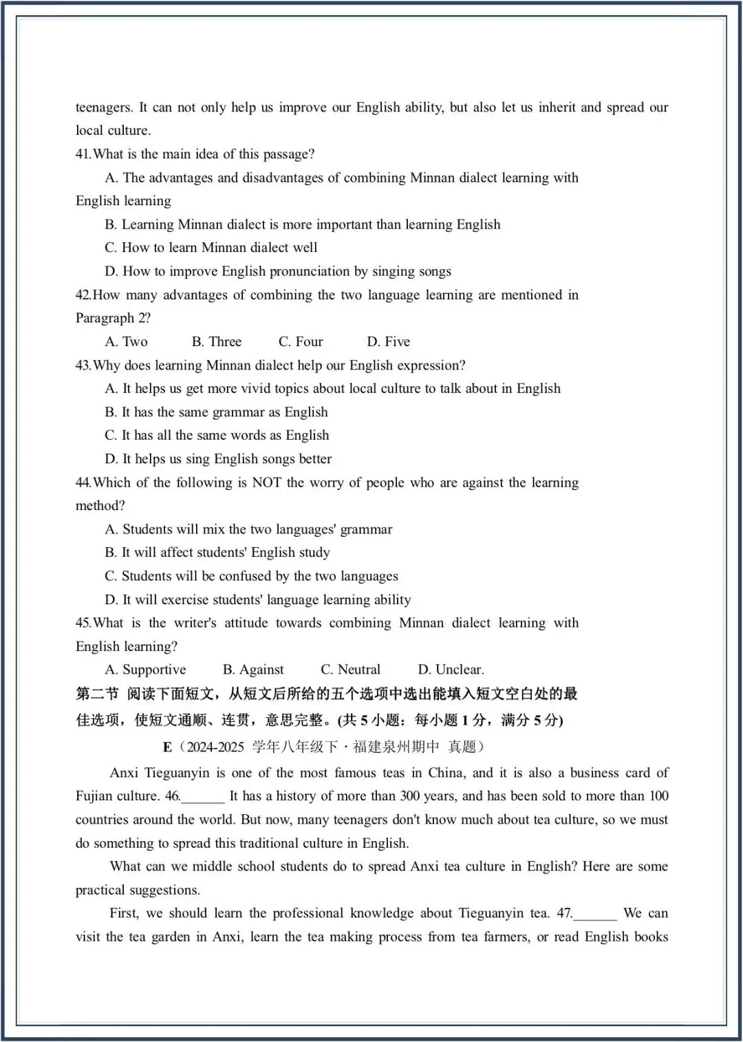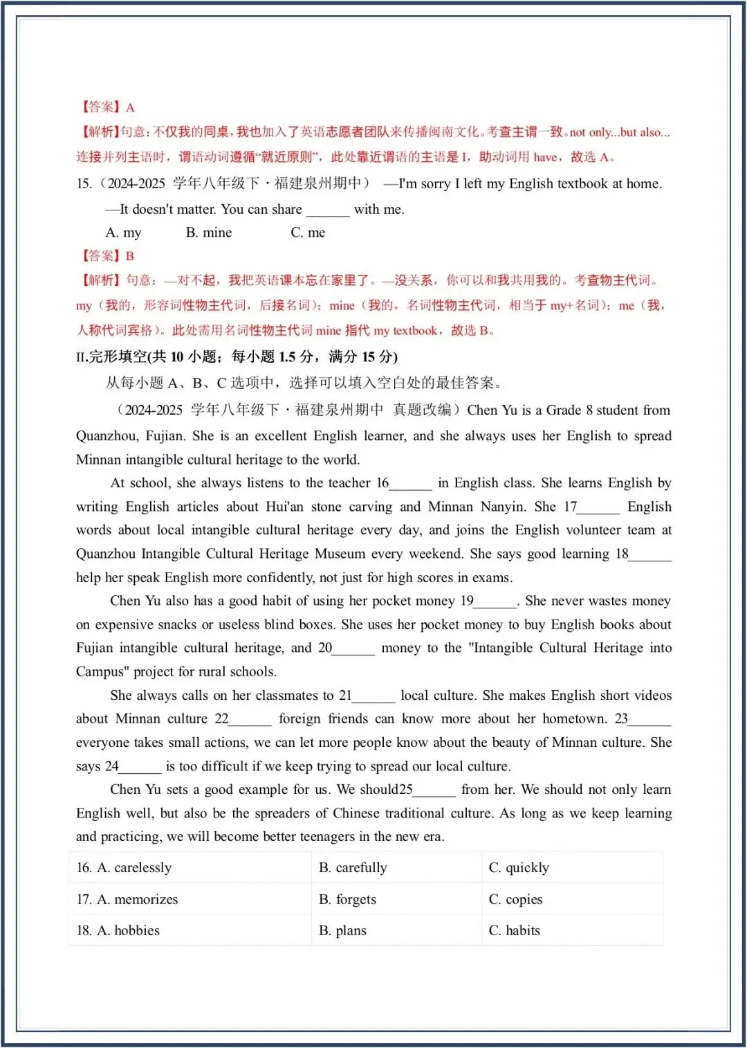 2026春新教材仁爱版八年级下册英语期中考-真题模拟卷,附答案,电子版可打印可下载
