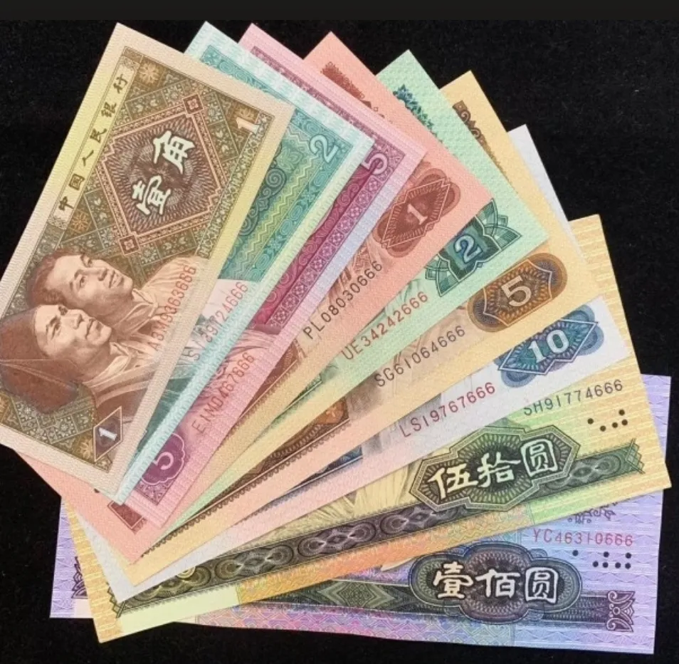 四版币这套从1987年4月开始发,到2018年5月退出流通,70后80后90后都用过,面值排开有1角2角5角1元2元5元10元50元100元,共九个面值,版别加起来十四种,版面一看就有年代味,正面是各民族人物头像,像50元是工人农民和知识分子,100元是四位领袖头像,背面是长城黄河井冈山这些熟的景,颜色鲜亮,辨识度高,很多人的第一张压岁钱和第一份工资都是这套票。