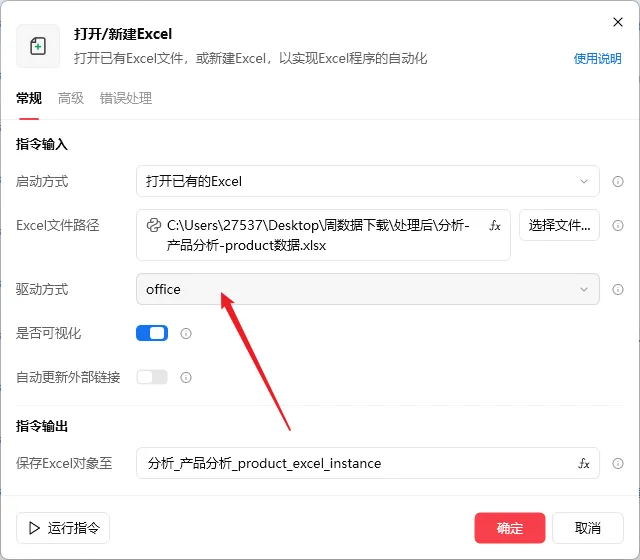 如果以上方法都不行,可以在影刀中将驱动方式改为 "openpyxl" :