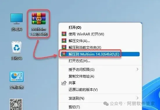1.鼠标右击Multisim 14.3压缩包解压到 Multisim 14.3。