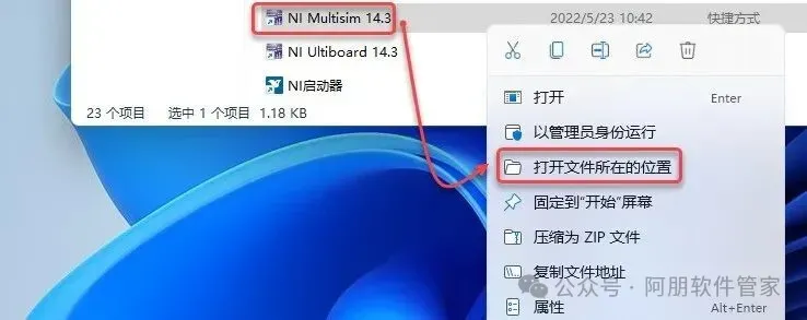 21.鼠标右击【NI Multisim 14.3】选择【打开文件所在的位置】。