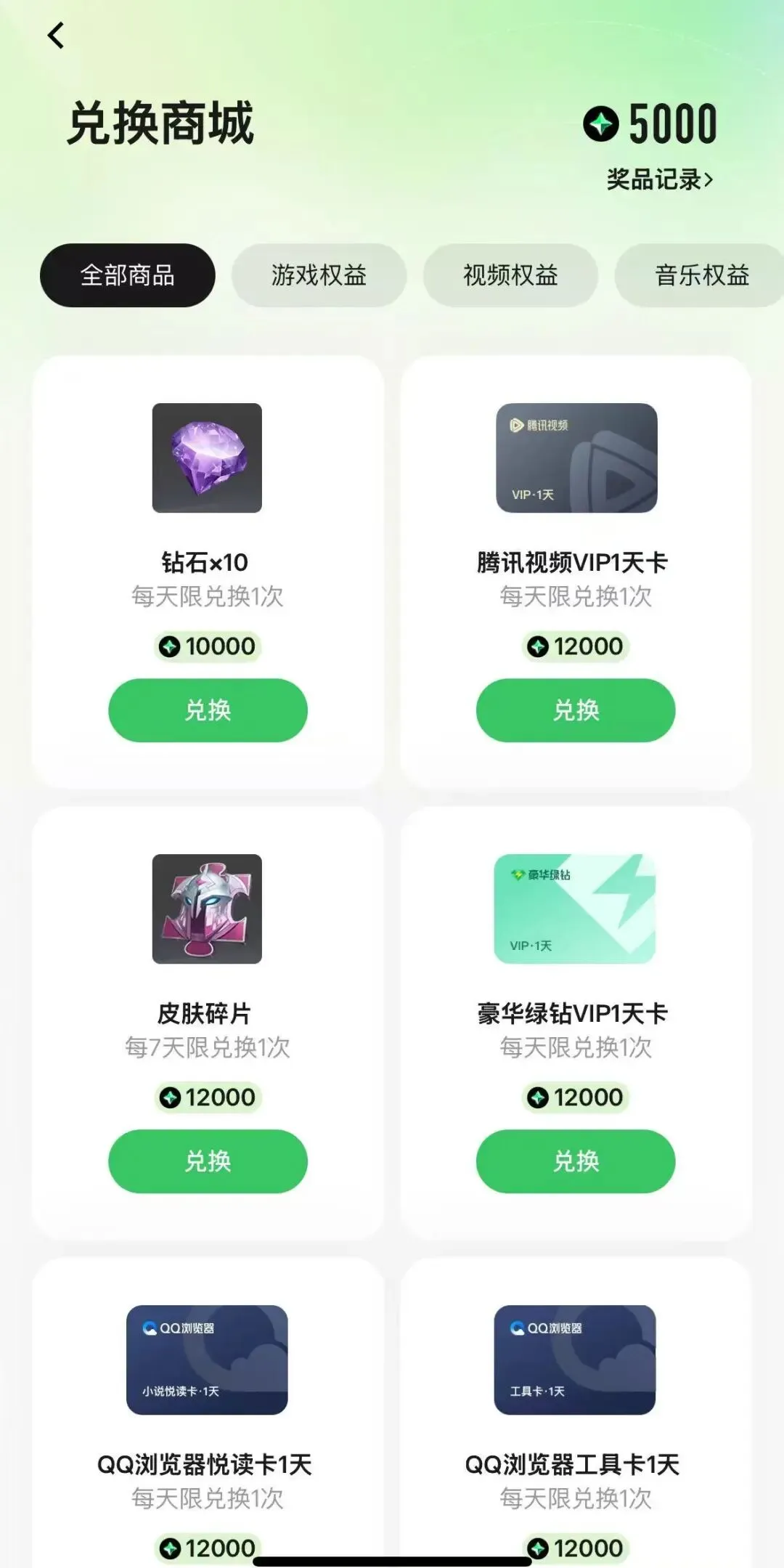 可兑换权益: 腾讯视频VIP会员、QQ音乐会员等腾讯系会员权益(具体兑换选项以App内实时展示为准)