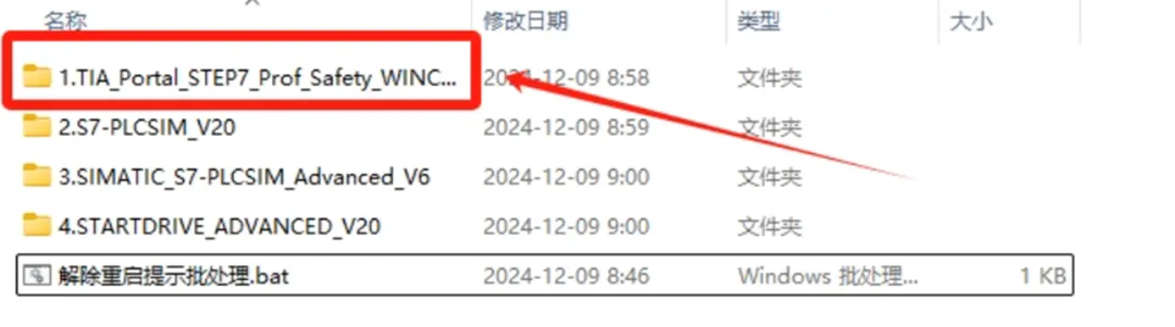 4.双击打开【1.TIA_Portal_STEP7_Prof_Safety_WINCC_DVD_1_V20】文件夹。