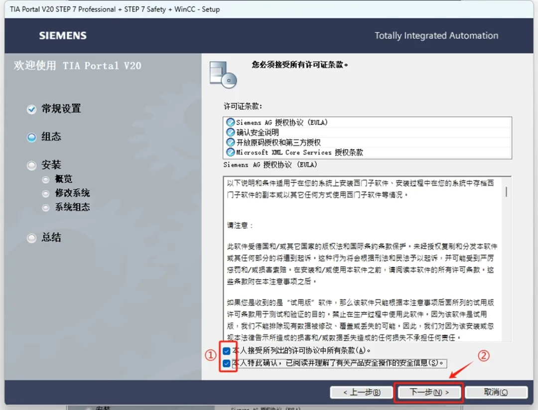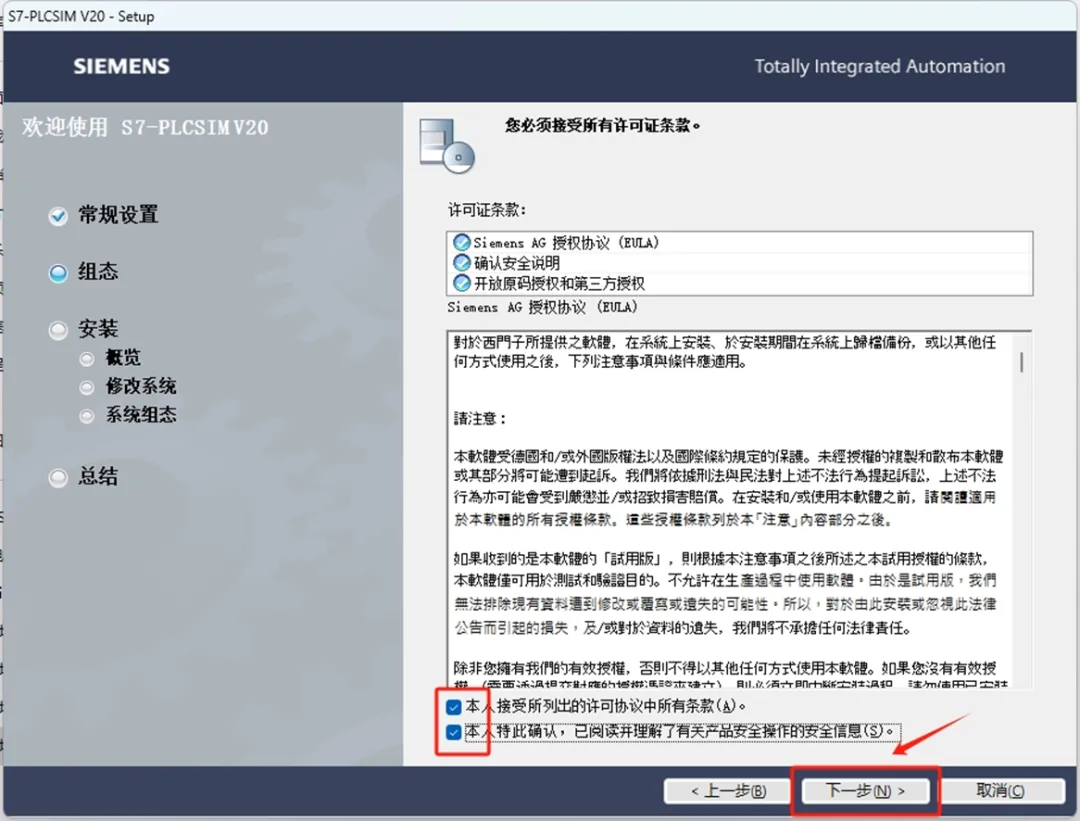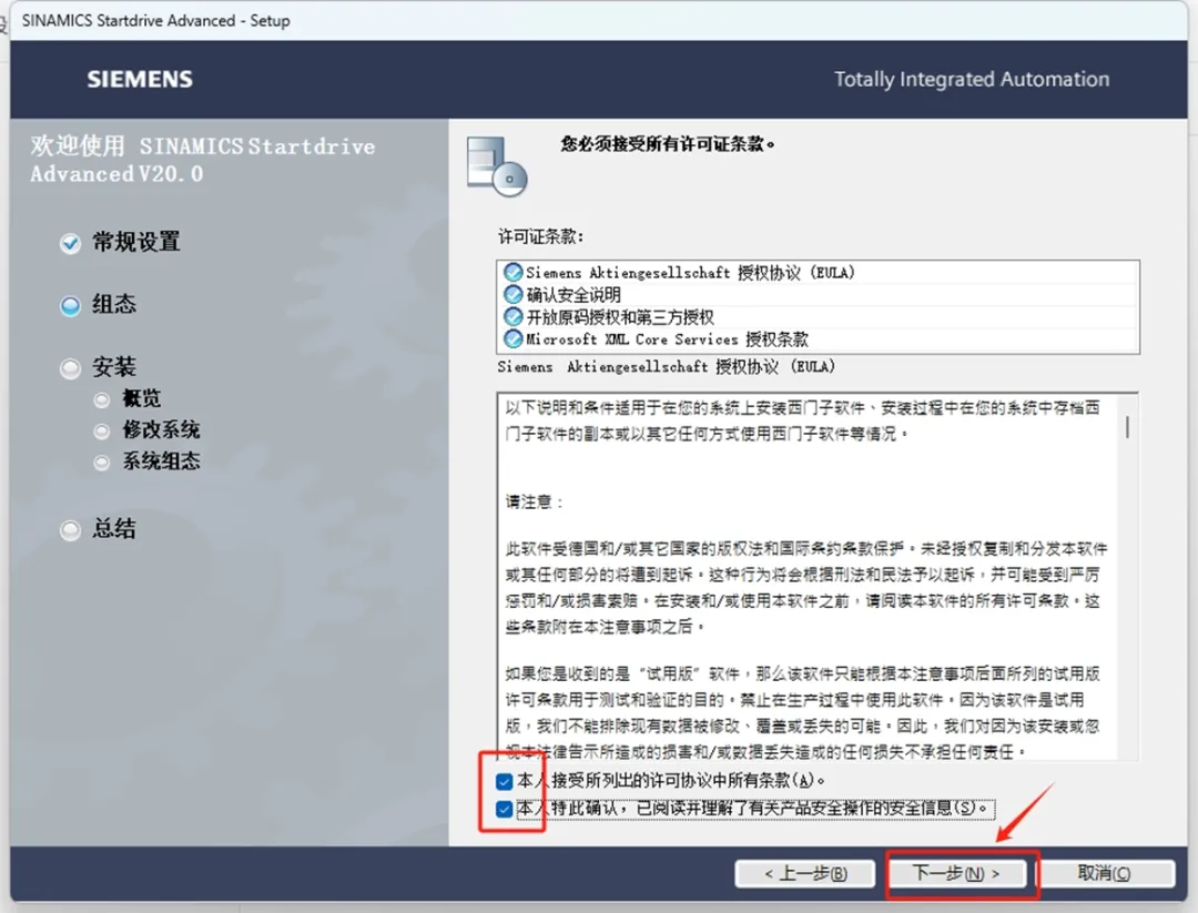 22.勾选【本人接受...】和【本人特此确认...】,点击【下一步】。