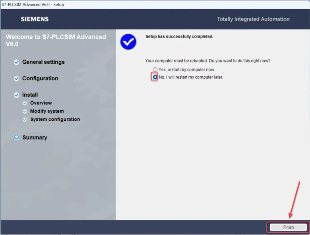 36.选择【No,Iwillrestartmycomputerlater】,点击【Finish】。