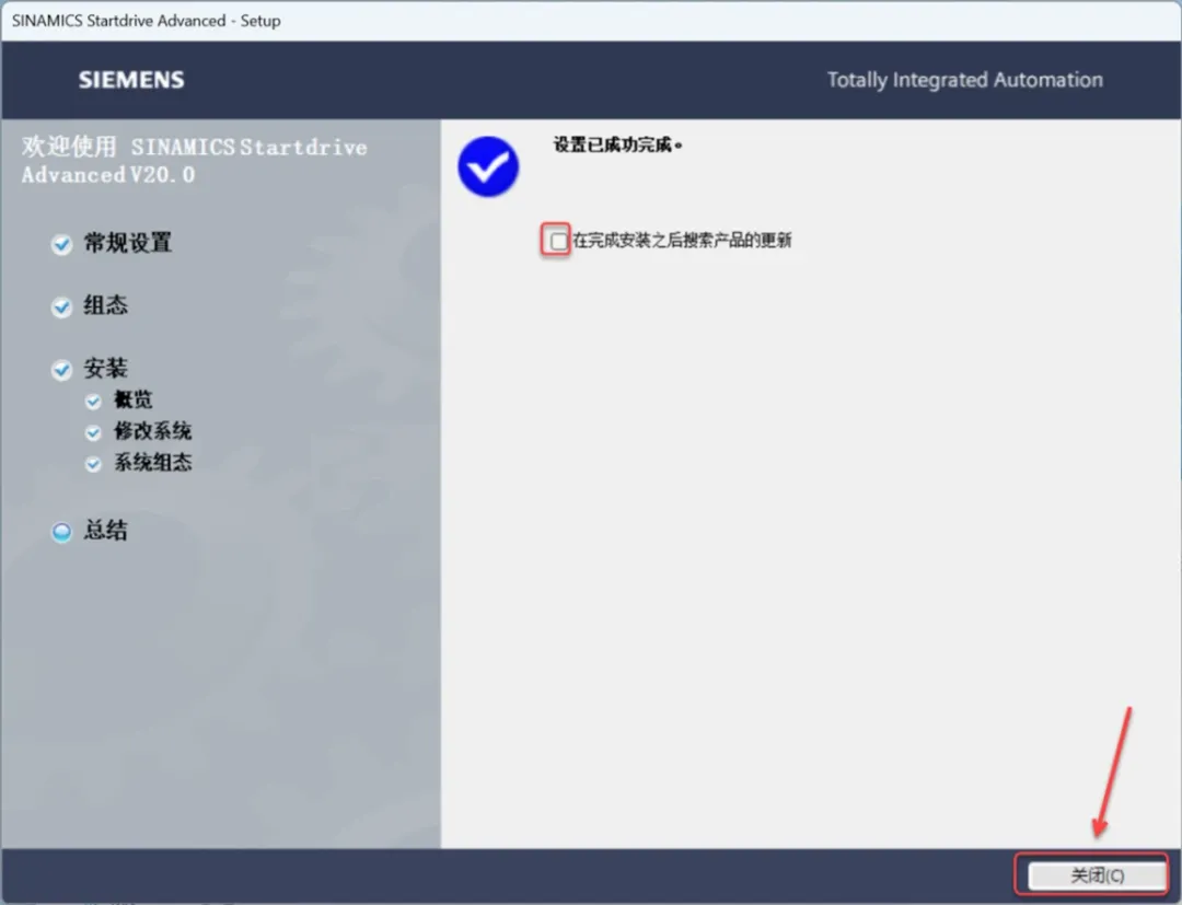 46.取消勾选【在完成之后...】,点击【关闭】。