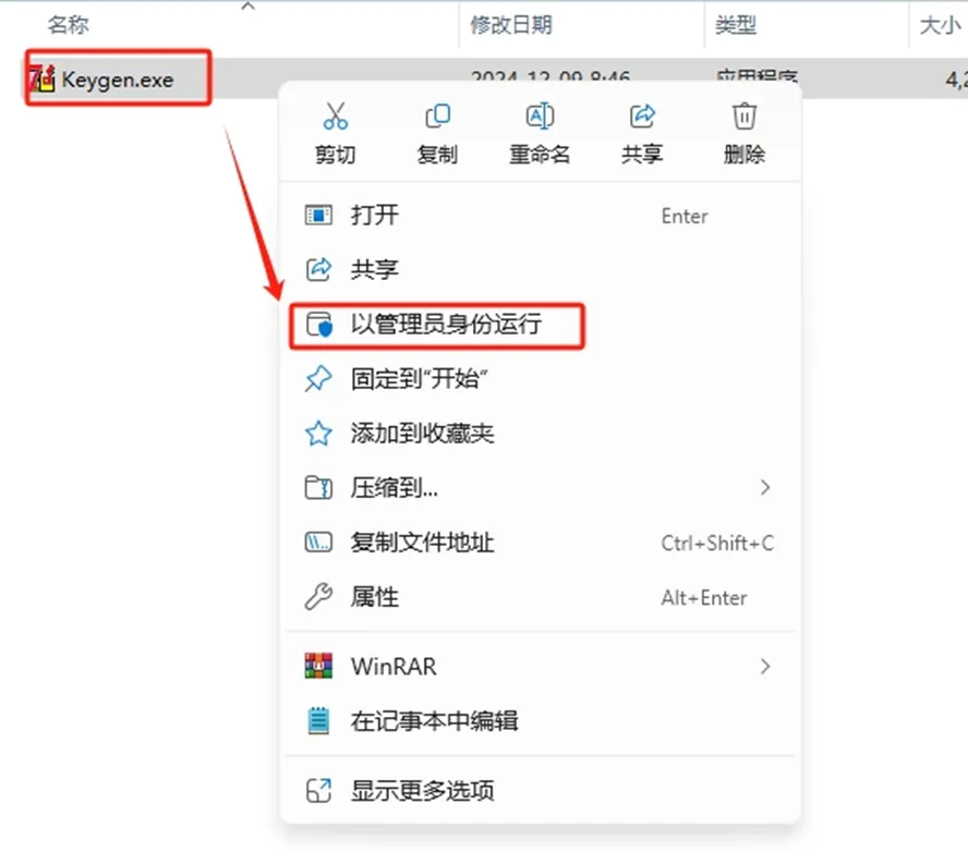 47.鼠标右击解压出来的【keygen】选择【以管理员身份运行】。